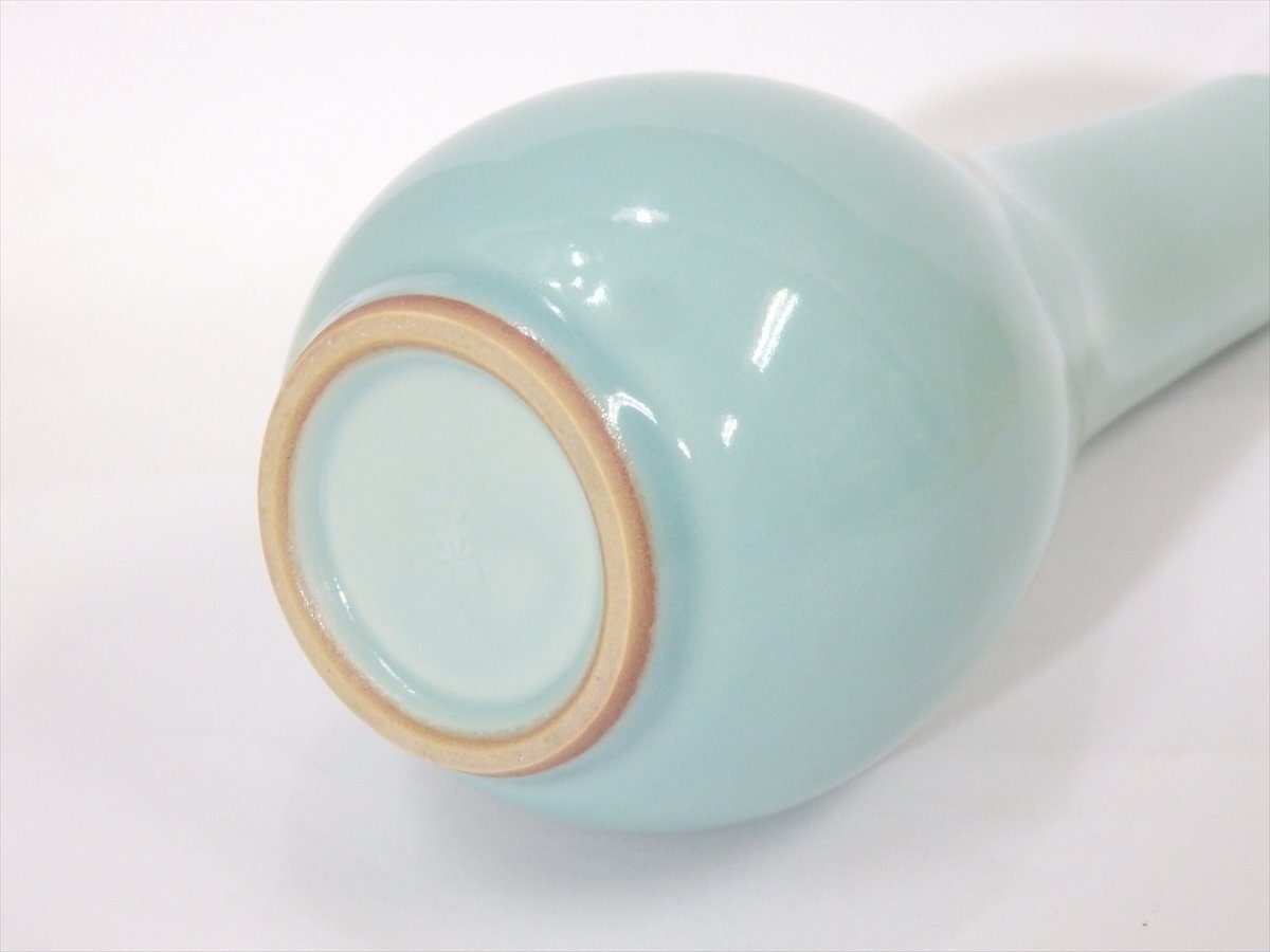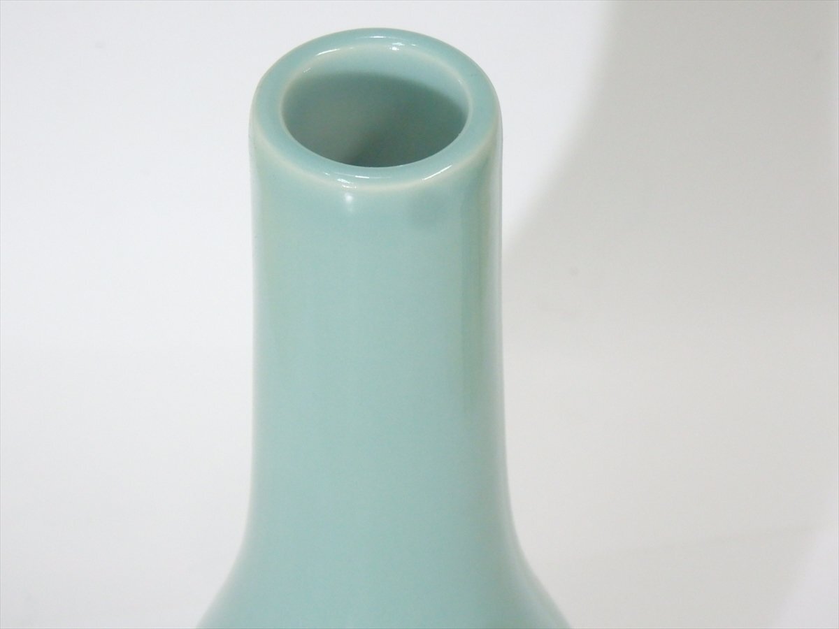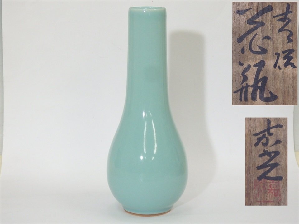 ★森野嘉光【青磁花瓶 共箱】状態良好! 胴径8.7cm 高さ22cm 口径2.7cm 茶道具 京焼 茶器 杓立にも!