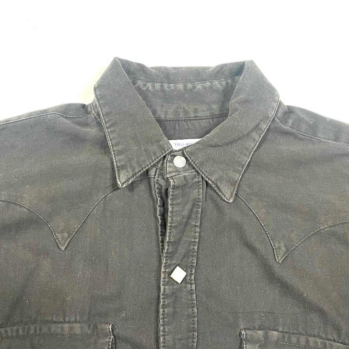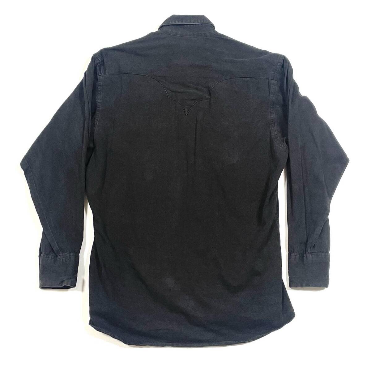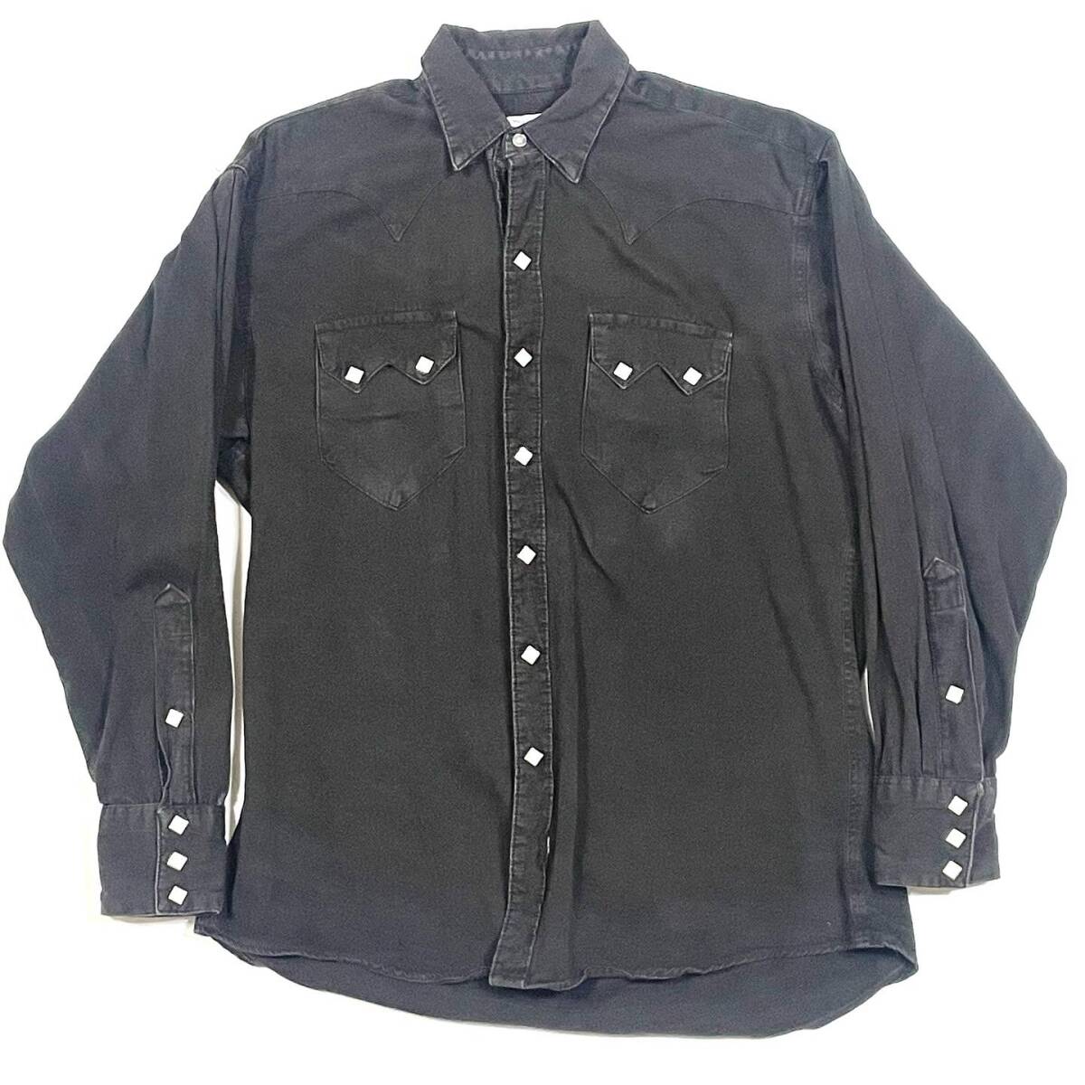 ブラックのコットンをストーンウォッシュで少し掠れた風合いに仕上げた1着で、ウエスタンのディテールでありながら、現代のコーディネートにも取り入れやすいデザインになっています。