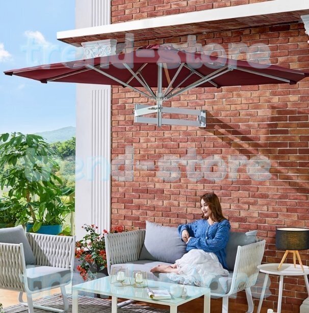 2.5m円形、壁掛け、折りたたみ式、ガーデン傘、角度調整可能、アルミニウム合金、裏庭の屋外、庭、テラスに適しています