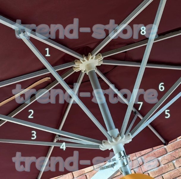 本体は、耐久性があり、変形しにくい高品質のアルミニウム合金素材で作られています。 。 8本のリブ、丸みを帯びたデザイン、強力なサポート力、広いシェーディングエリアを備えています。