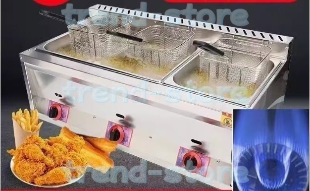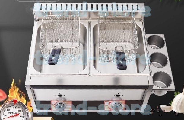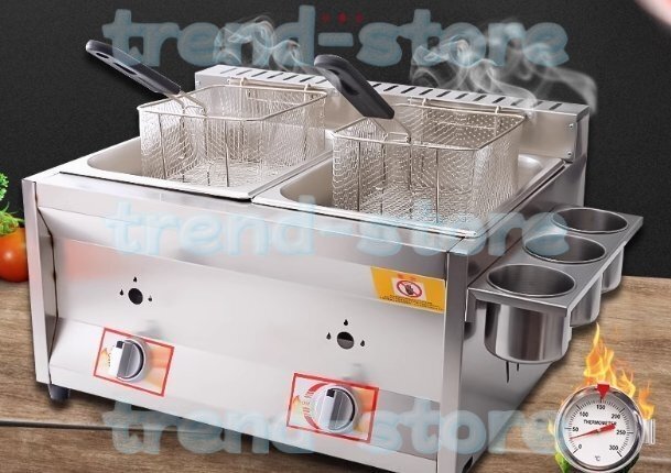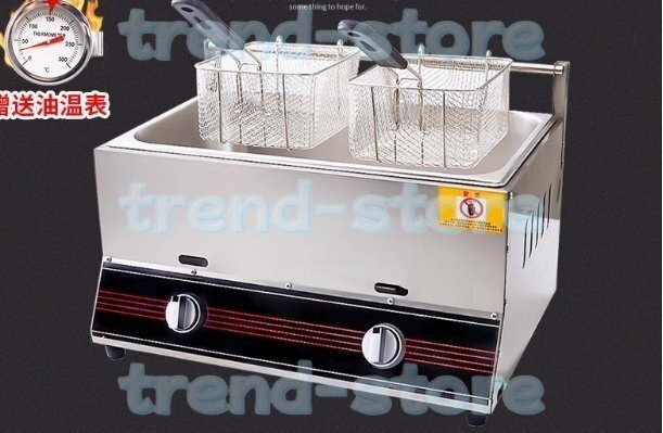 業務用フライヤー ステンレス鋼 揚げバスケット付き 温度調整機能 LPガス用 (55*44*34cm二重鍋+二重揚げバスケット)