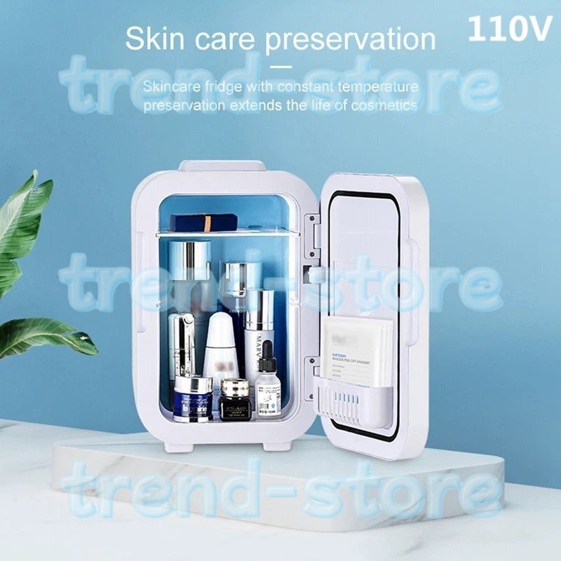 8L化粧品冷蔵庫 ポータブル 冷蔵庫 LEDライト タッチ式明るさ調整 メイク スキンケア 美容 環境温度より20℃低い 100V家庭用 12V車用
