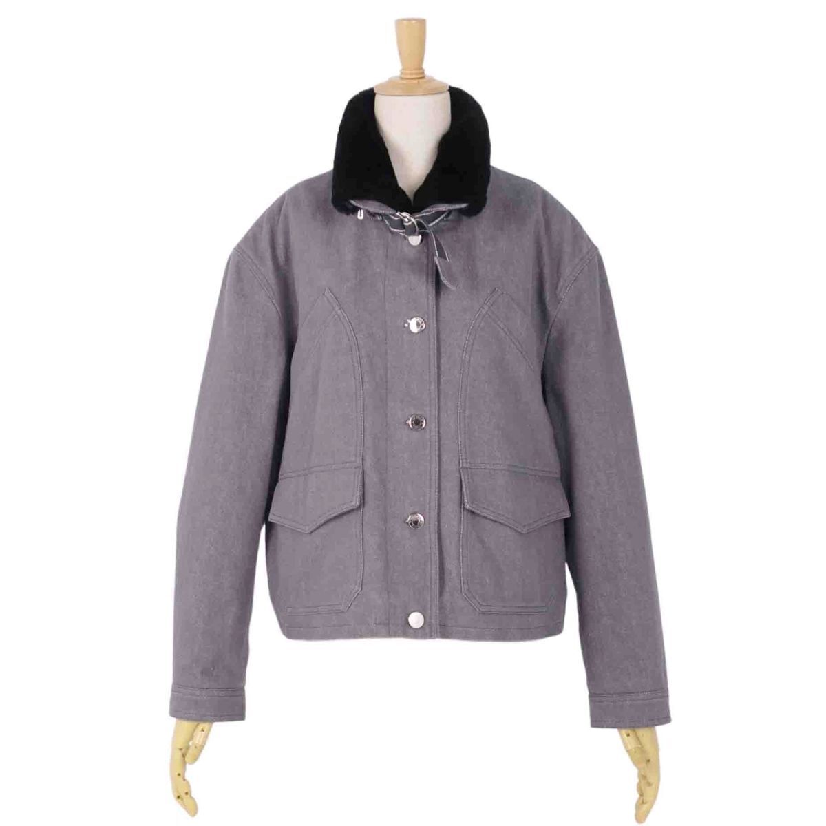 極美品 エルメス HERMES 22AW ボンバージャケット ラムファー ボア デニム セリエボタン アウター レディース 38(M) |