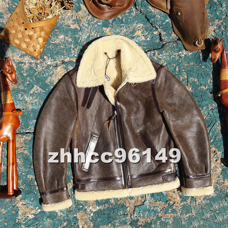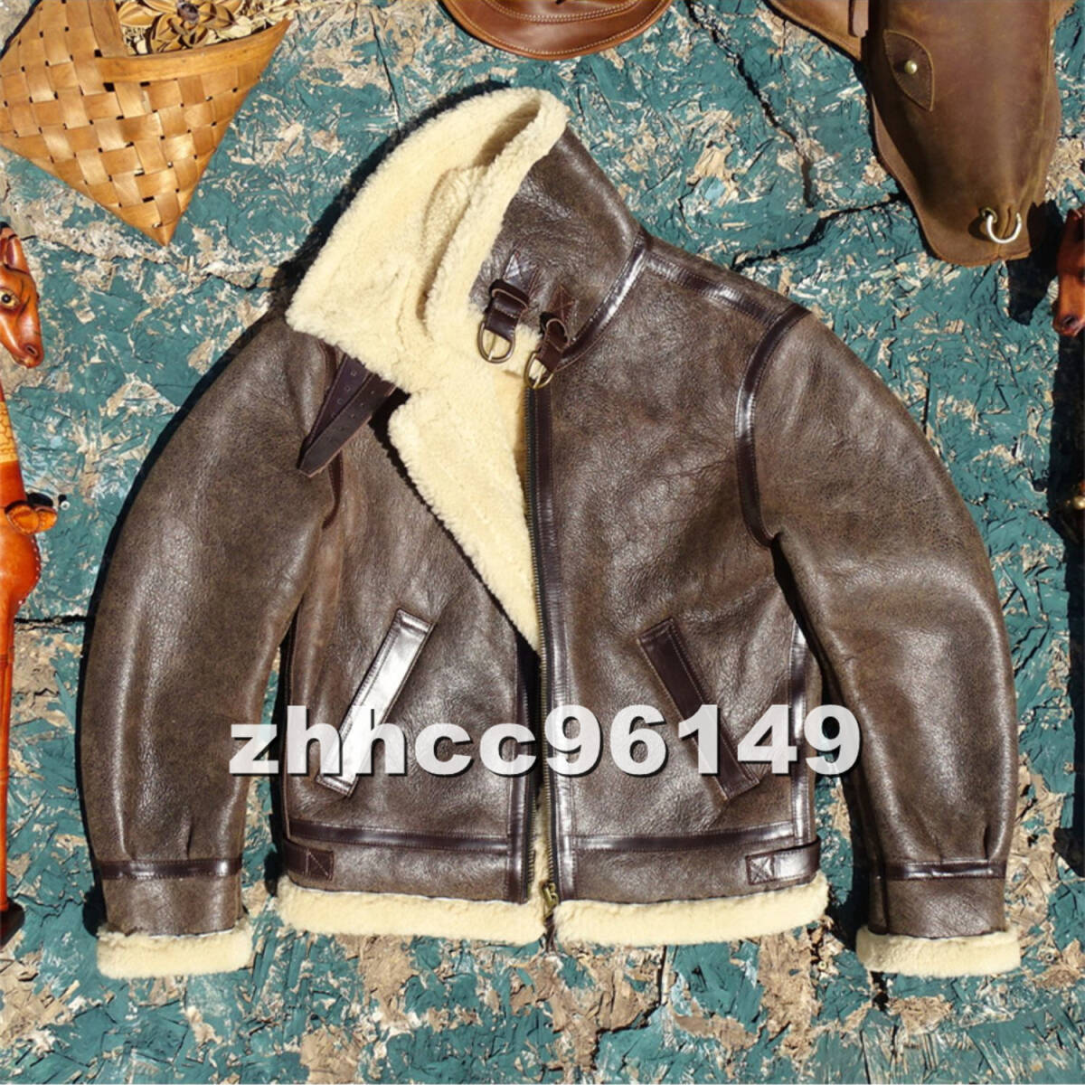 ■新品■メンズ 革ジャン TYPE B-6 フライトジャケット 最上級 羊革 ウール レザージャケット ライダース ブルゾン 毛皮 超防寒 本革 M-4XL