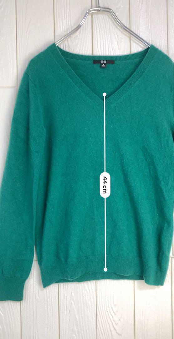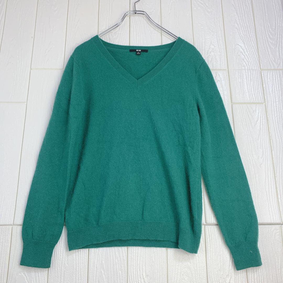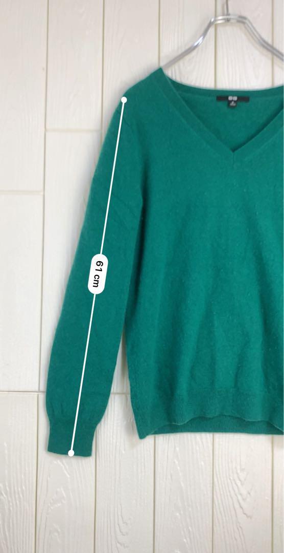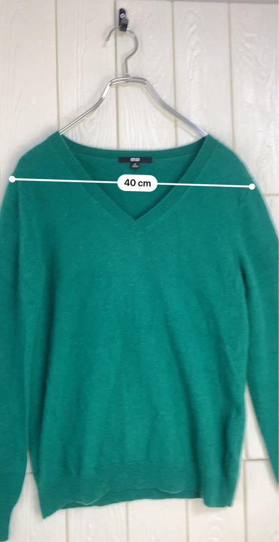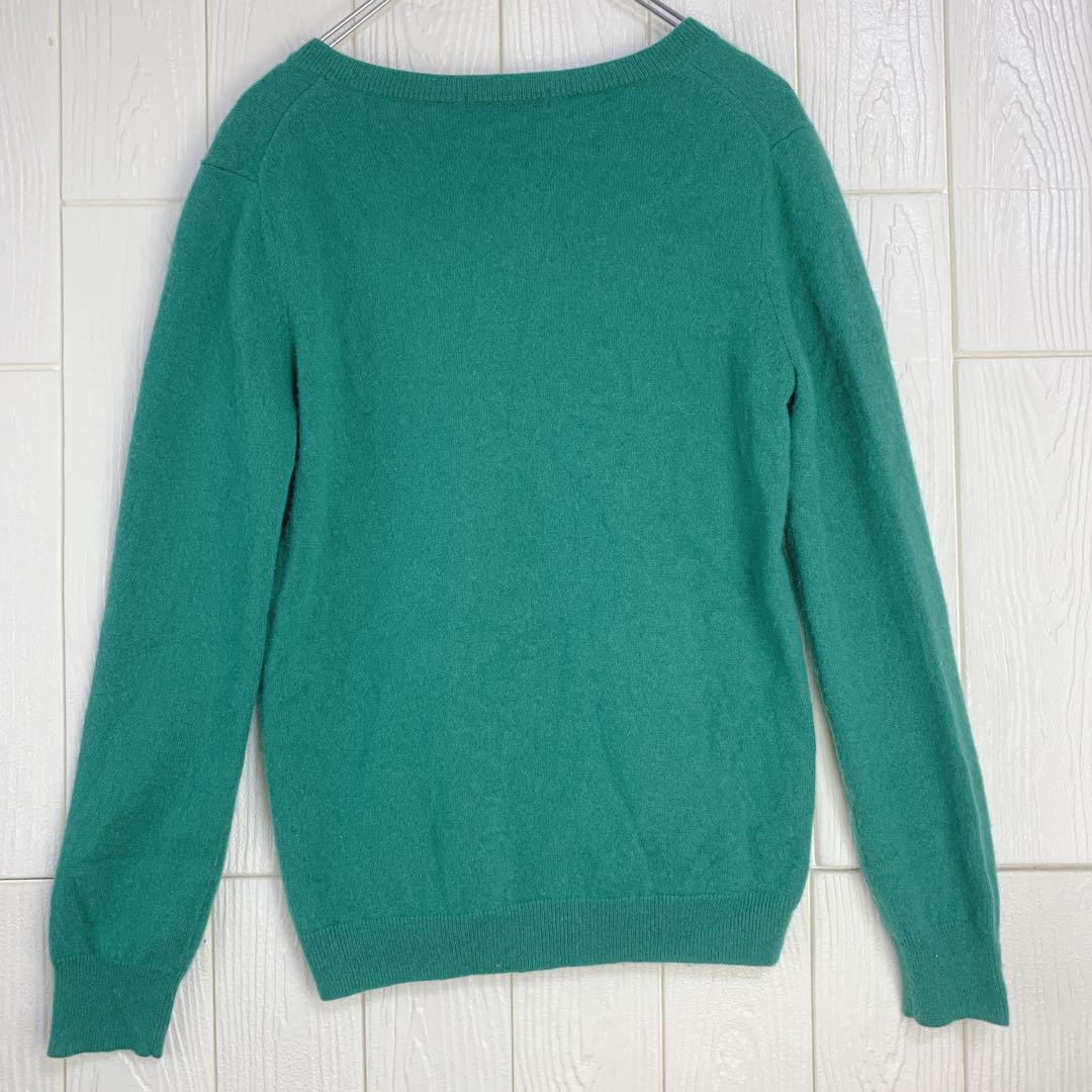 柔らかい素材のグリーンのVネックセーター。