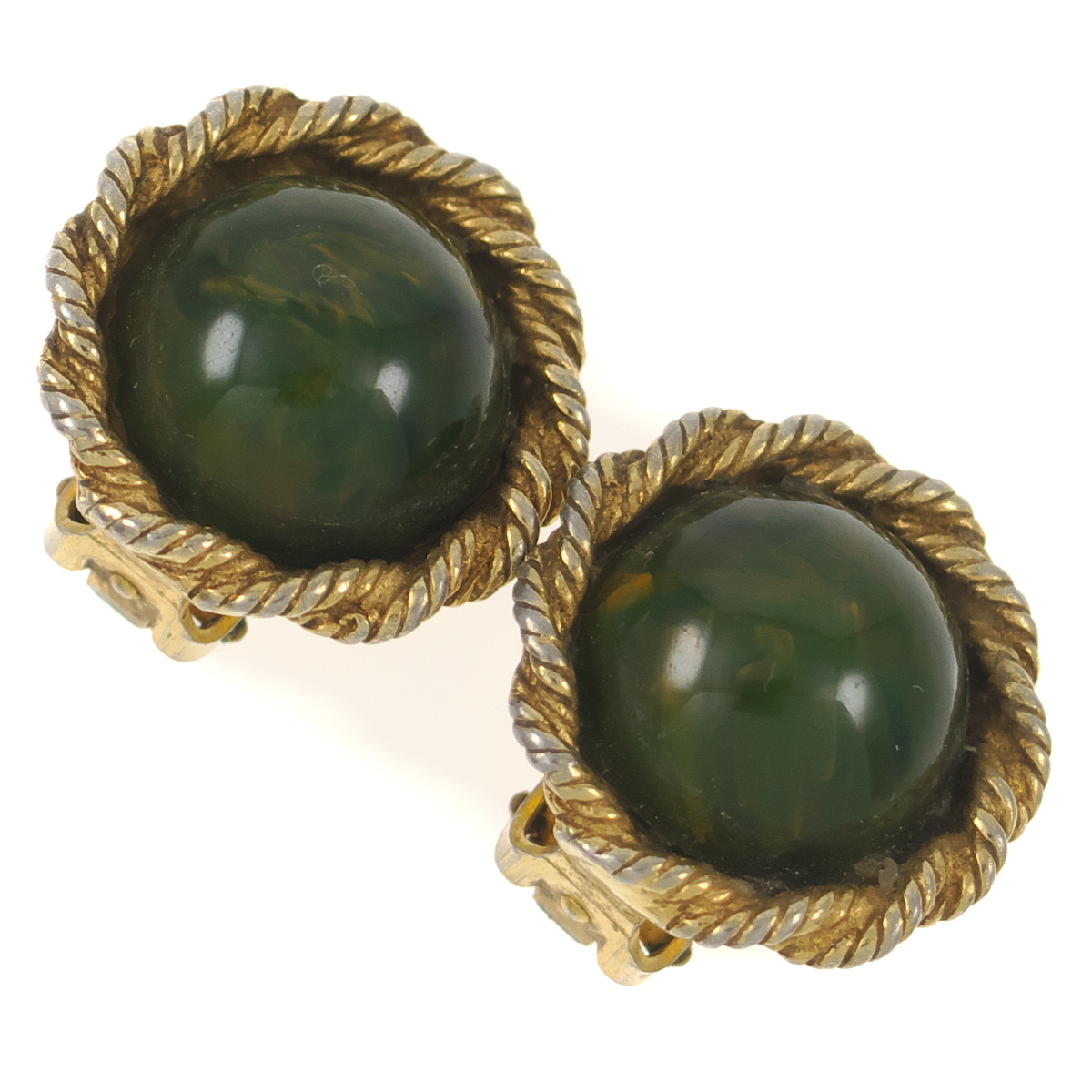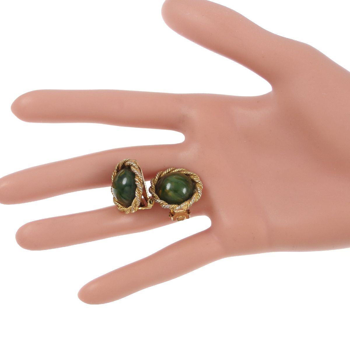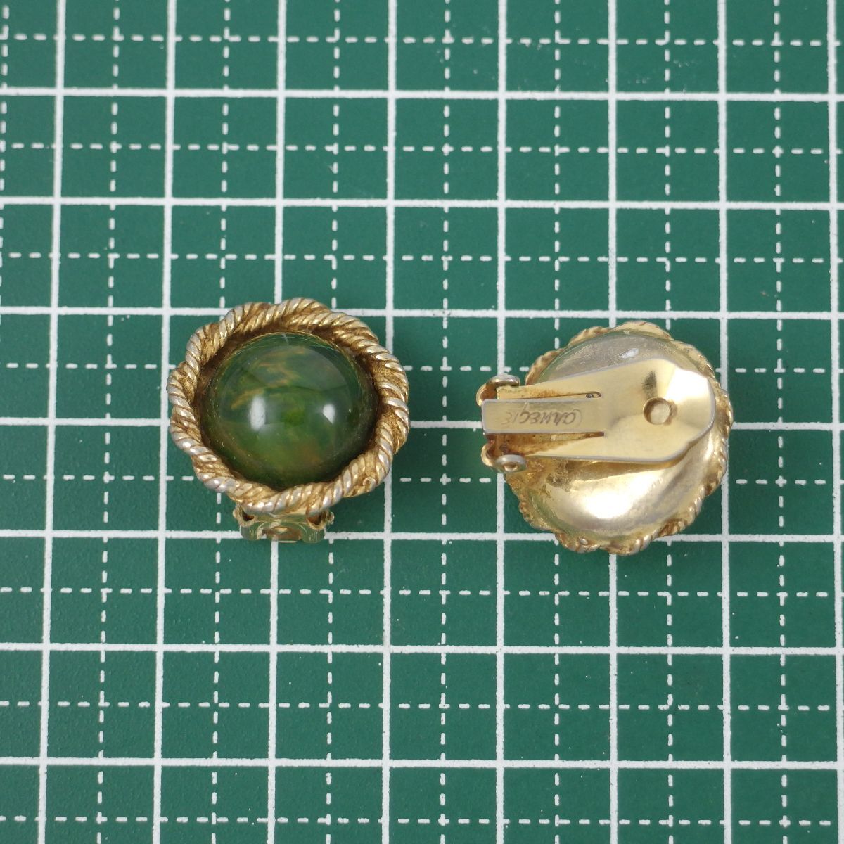 A10282◆【CARNEGIE】◆ フラワーモチーフ グリーン系マーブルカボションストーン ◆ ヴィンテージイヤリング ◆