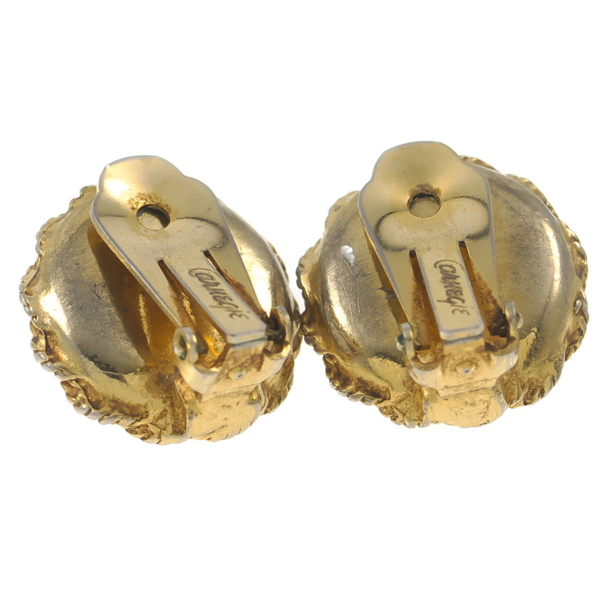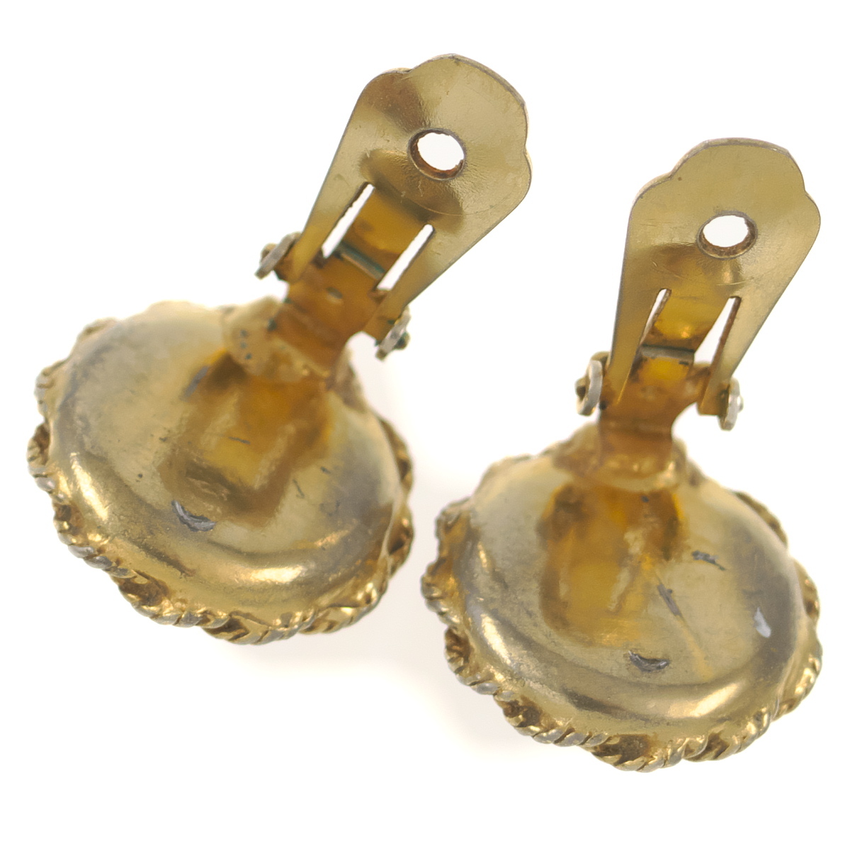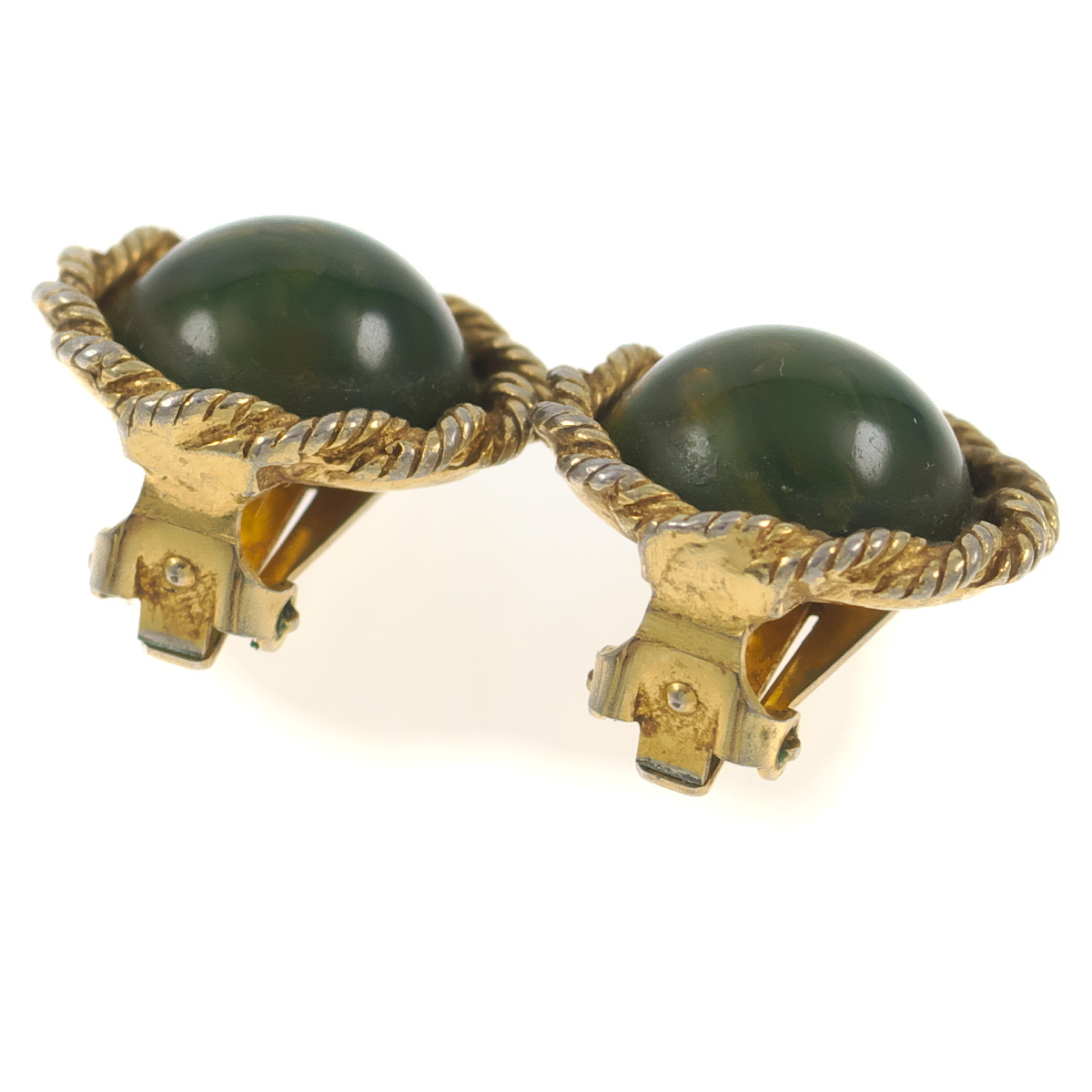 A10282◆【CARNEGIE】◆ フラワーモチーフ グリーン系マーブルカボションストーン ◆ ヴィンテージイヤリング ◆