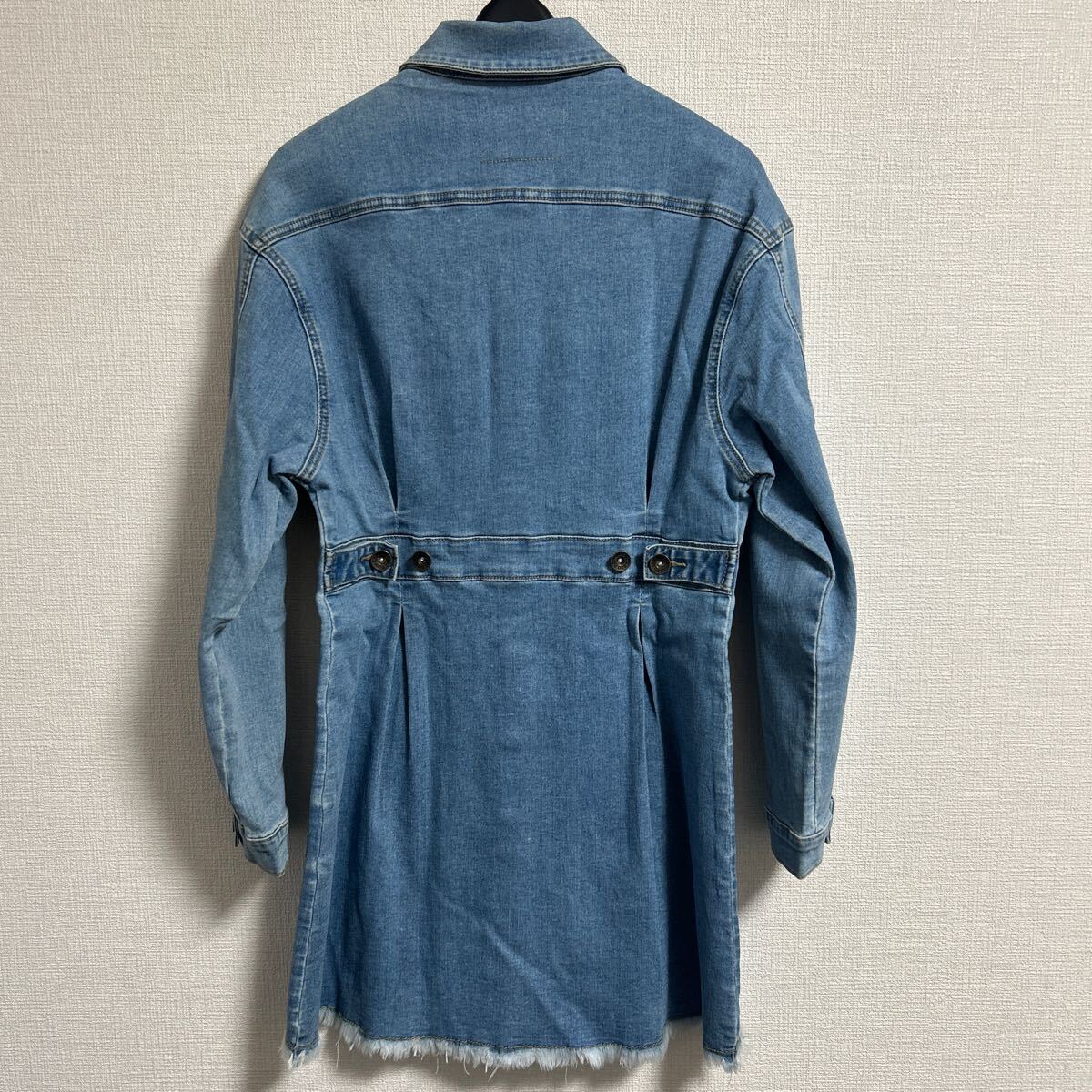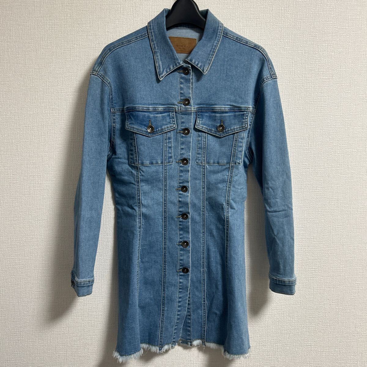 デニム素材の長袖ロングシャツドレス、ボタンとポケット付きでスタイリッシュ。 - 色: デニムブルー - デザイン: ボタン付き、ポケット付き - スタイル: ロングシャツドレス - 素材: デニム - 袖: 長袖 サイズ不明ですが、当方Sサイズを普段着用しています。 衿の内側にうっすら汚れありますがほぼわかりません。ストレッチあり。 着丈80cm、身幅47cm、肩幅50cm、袖丈51cm ご覧いただきありがとうございます。