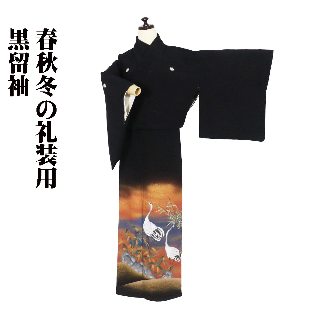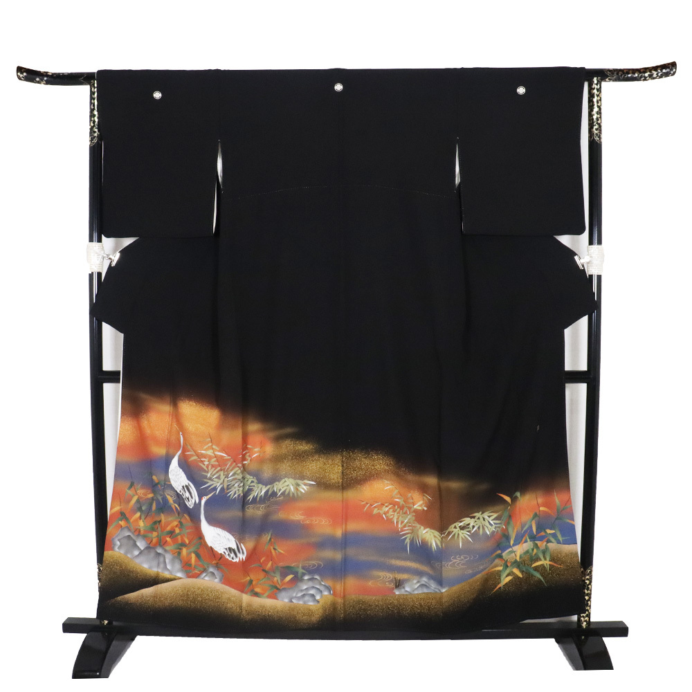 | 色・柄 | 黒留袖 袷 丹後縮緬地 濡れ描き夫婦鶴 上品な留袖です。 (写真では上手く色が出ない場合があります。ご了承下さい) |