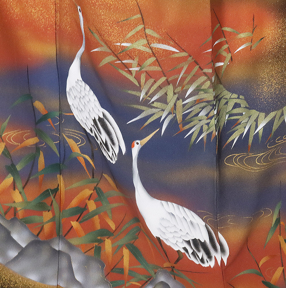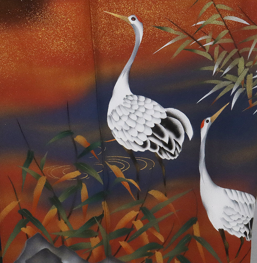 | 黒留袖 袷 丹後縮緬地 濡れ描き夫婦鶴 164 広襟 比翼仕立て 作家落款入り | |