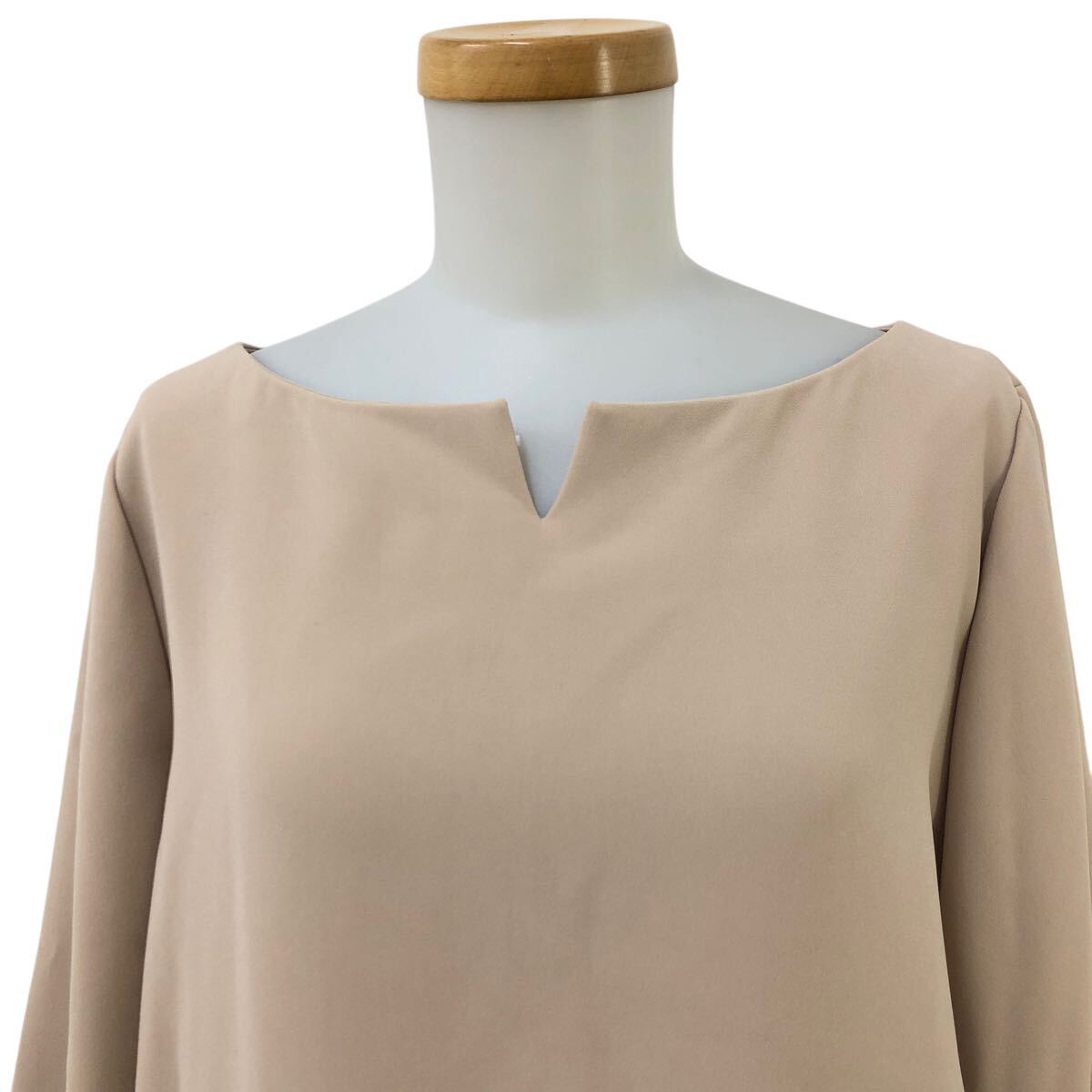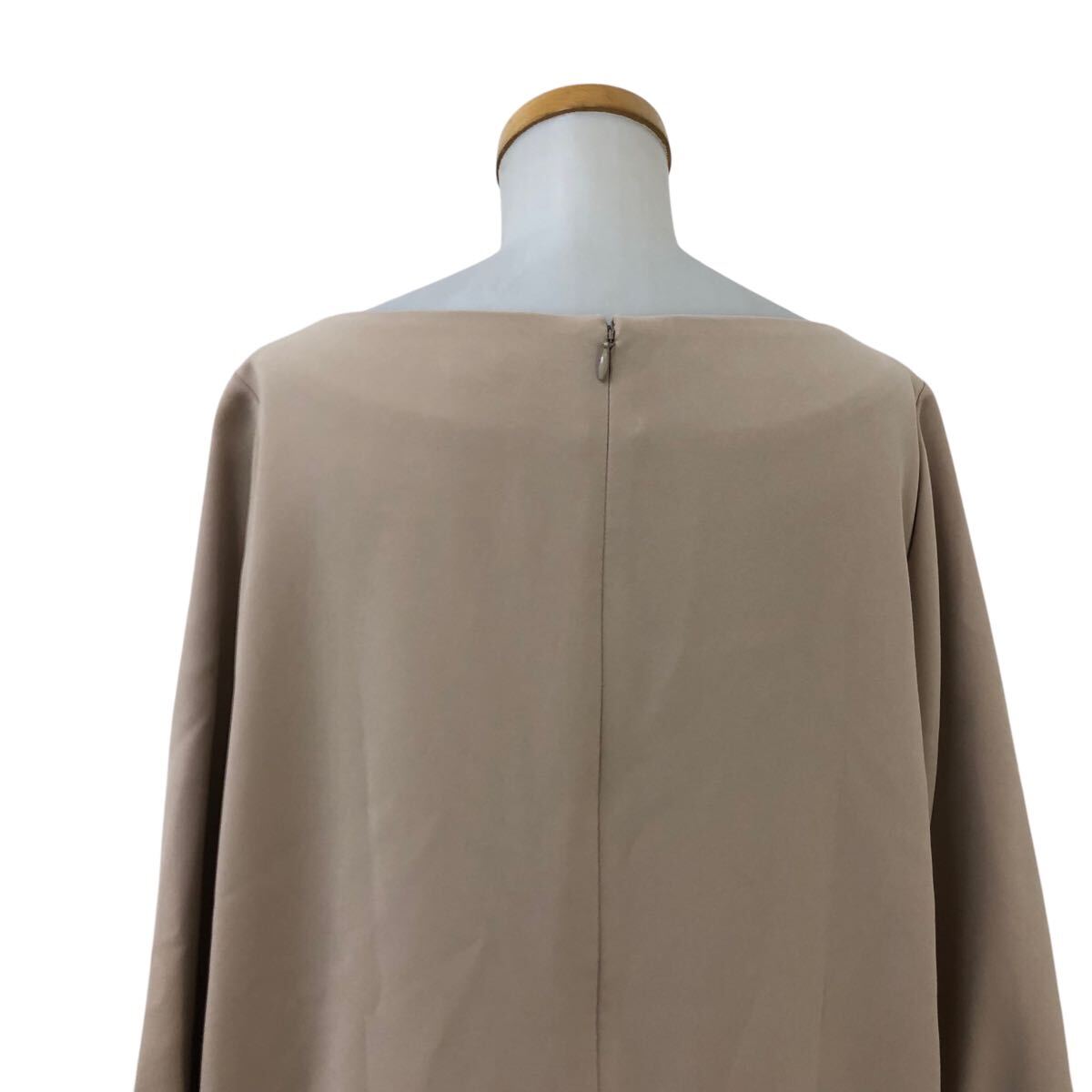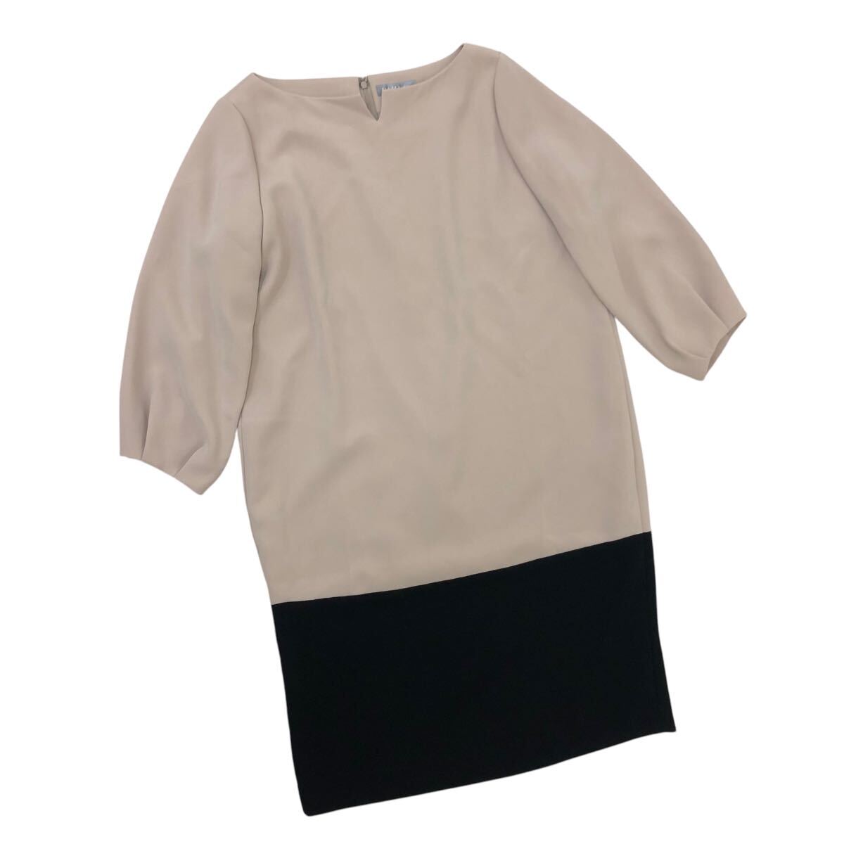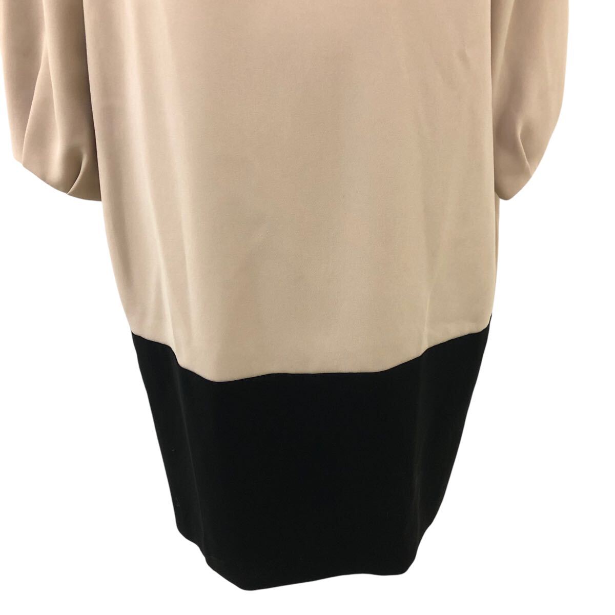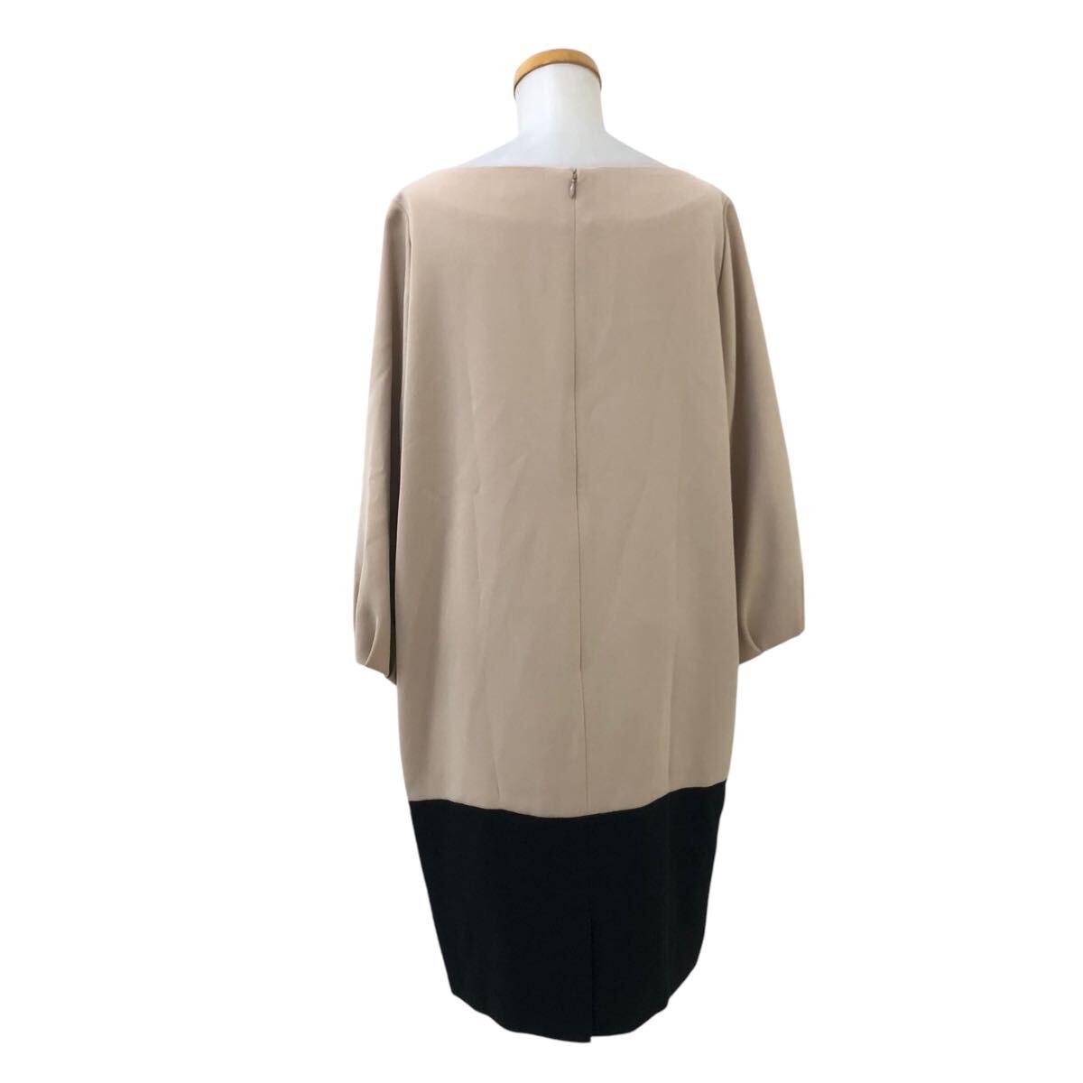 Nm272-64 大きいサイズ DAMA collection ダーマコレクション キーネック 袖付き ワンピース バイカラー ベージュ レディース 13AR 日本製