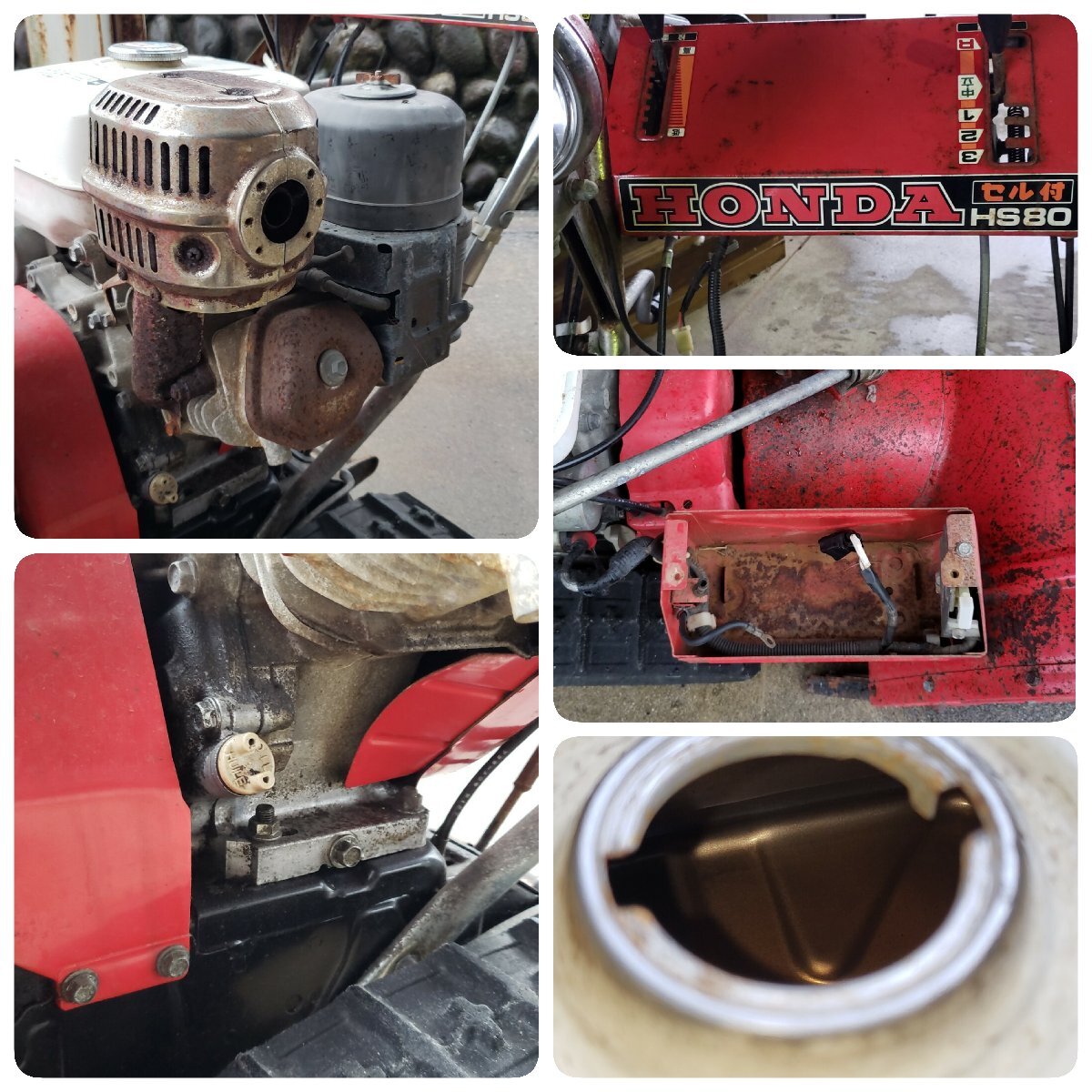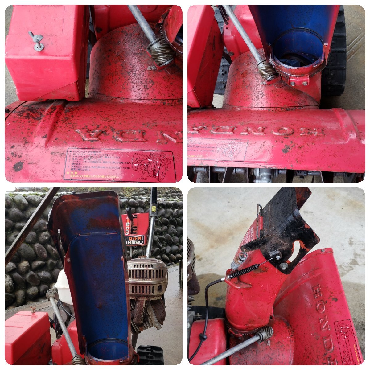 HONDA除雪機HS80です。バッテリーはありませんが動作確認済みです。全体的に錆があります。タンク内はきれいな方だと思います。
