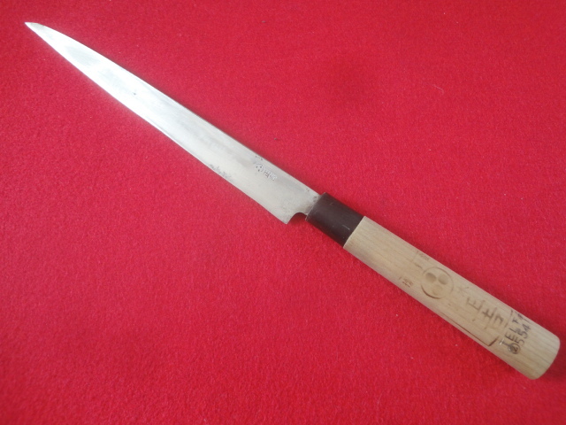 【正吉】フグ引包丁 刃渡22.5㎝ 全長36.5㎝ 峰厚2.7mm※片刃 中古品 全国一律送料1200円