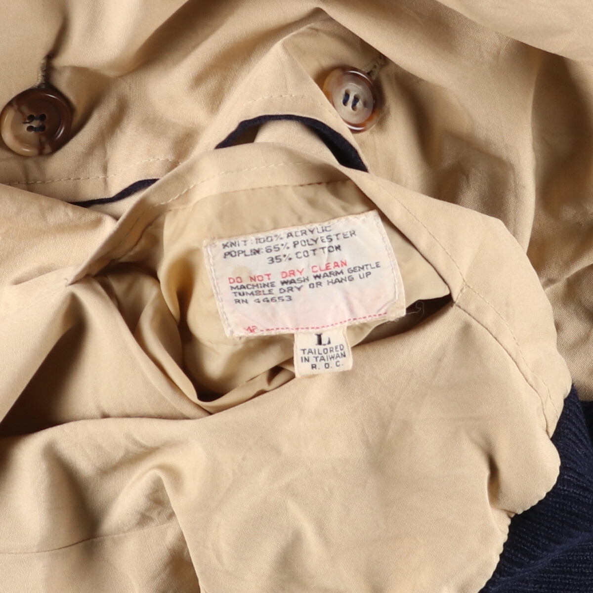 表記サイズ: L 着丈: 65.5cm 身幅: 62.5cm 裄丈: 89.5cm 袖丈(脇下計測): 53cm ![]() | ![]() ランク:C USEDですので使用感などございますが、まだまだご愛用していただけます。 古着という事をご理解の上ご注文よろしくお願いします。 【状態追記】 ●A面(ベージュ)・B面(ネイビー) ●A面前、前立て(第1.4ボタン)にリペア跡 左ポケット内側に糸引き 右腕・両袖先・前立て(胸部・裾)・腹部に汚れ ●A面後、背中・両腕・両袖先・左腰・裾に汚れ ●B面前、前立て(第4ボタン)にリペア跡 |