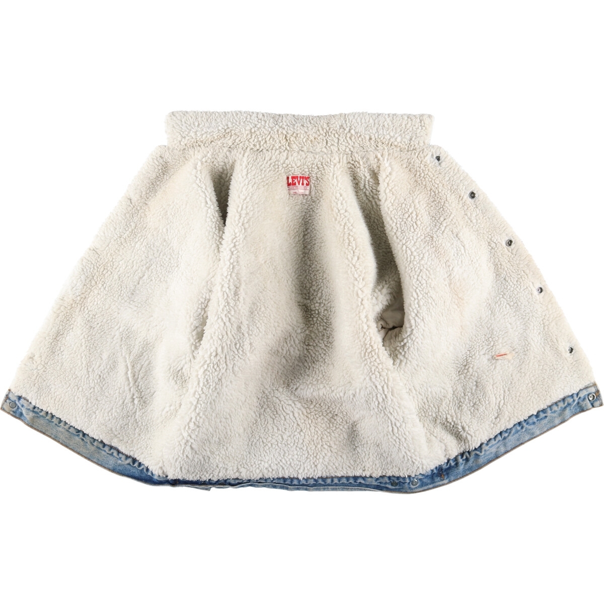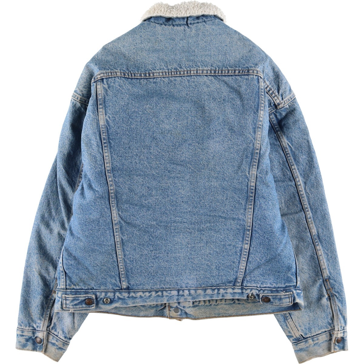 | 表記サイズ: L 着丈: 61.5cm 身幅: 62cm 肩幅: 55.5cm 袖丈: 58cm ![]() | ![]() ランク:C USEDデニムですので使用感、擦れ、色落ちなどございますが、まだまだご愛用していただけます。 古着という事をご理解の上ご注文よろしくお願いします。 【状態追記】 ●前、胸・腹部・裾・左右腕・左右袖先に汚れ ●後、左肩・左背中・腰・裾・左右腕・左右袖先に汚れ ●内側、左右腕・左右袖先・裾周りに汚れ ●内側前、胸前立て裏・腹部前立て裏・裾前立て裏・左右腹部ポケット内に汚れ ●内側前、体側ライナー、全体に汚れあり ●内側後、全体に汚れあり |