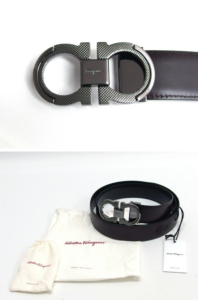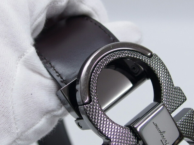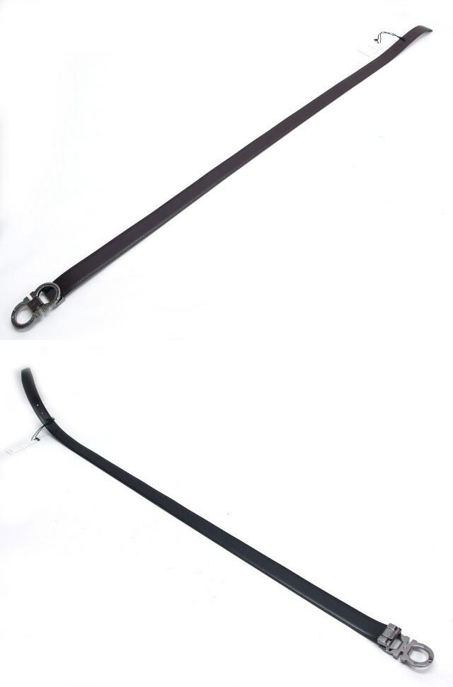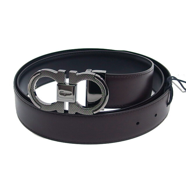 コメント | フェラガモのアイコン「ガンチーニ(小さなフック)」がそのままバックルにデザインされた、こげ茶と黒のリバーシブルベルトです。艶やかなスムースレザーが上品で、幅広いコーディネートに取り入れやすい逸品です。網目柄のガンチーニバックルはエレガントな雰囲気です。 |