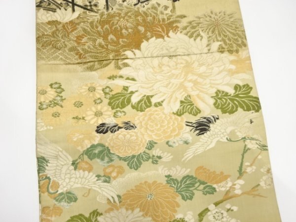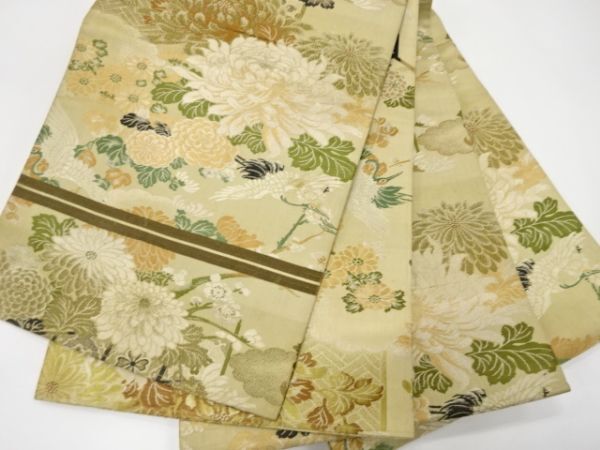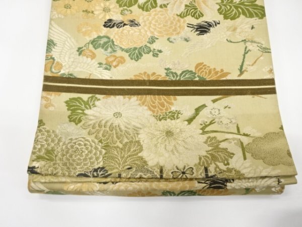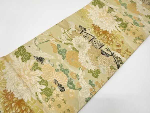 ys7274313; 鶴に菊・枝梅模様織り出し丸帯(材料)【アンティーク】【着】