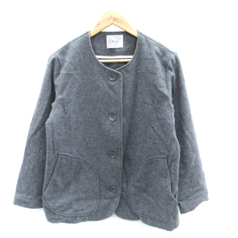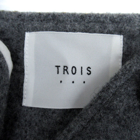 トロワ trois ノーカラージャケット ミドル丈 グレー /SM48 レディース