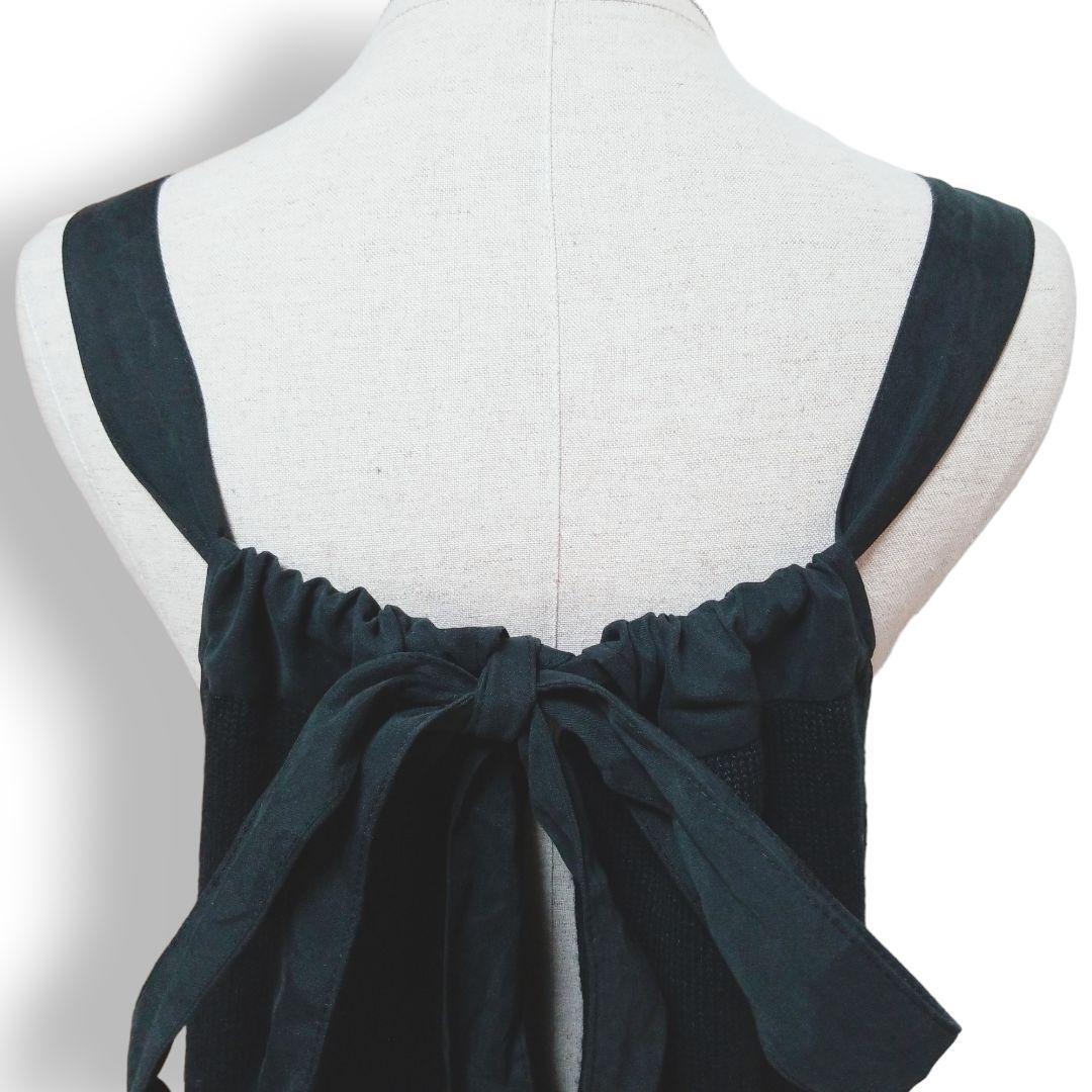 フロントのDカンとバックリボンでサイズや丈調整が可能。