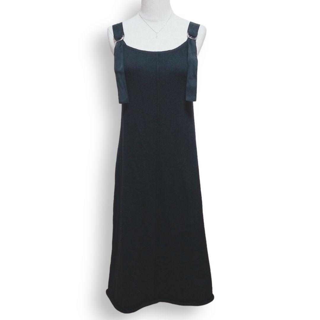商品名 : 神戸レタス バックリボン 異素材切り替え フレアニットワンピース