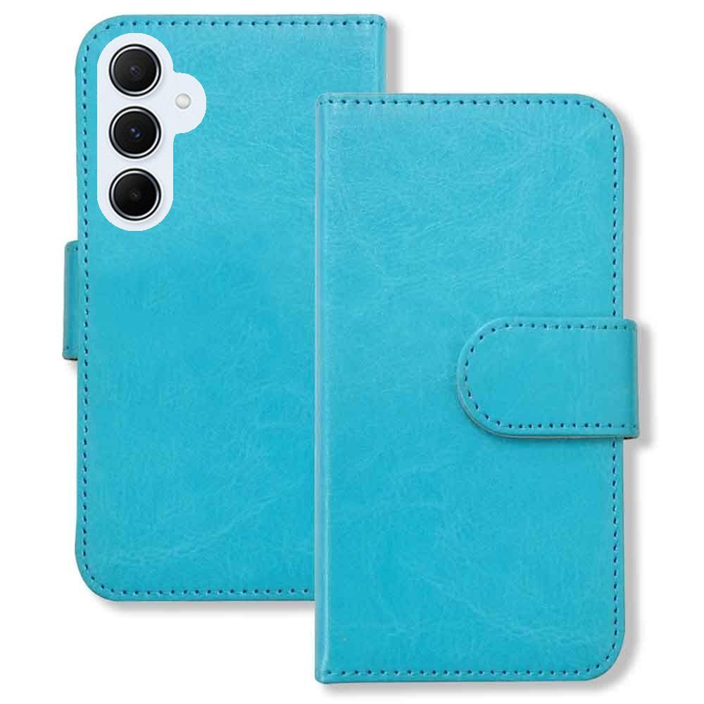 Galaxy A55 5G SC-53E SCG27 スマホケース(手帳ブルー)手帳型 PUレザー 無地 ケース ダイアリータイプ 横開き カード収納 カバー