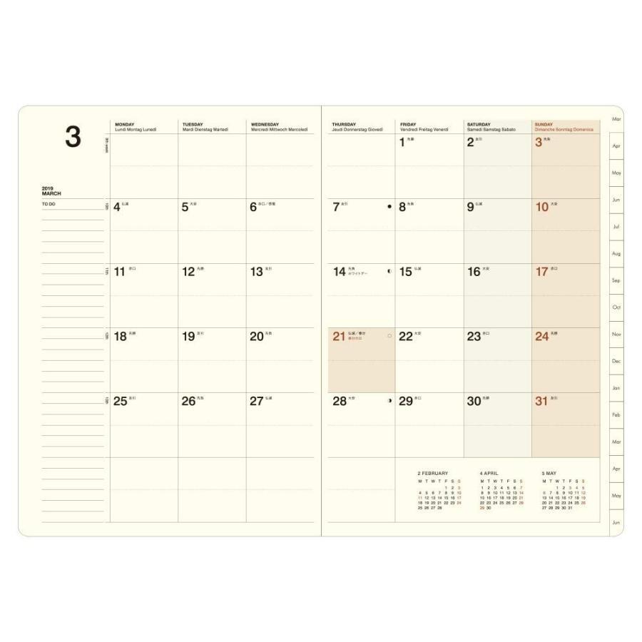 B6サイズ見開き1週間ブロックタイプの手帳。
