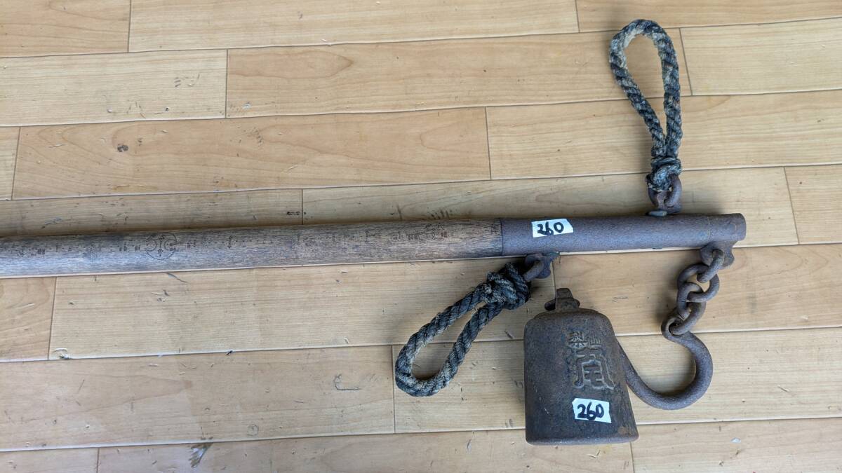 | No.260●竿秤●天秤●約1250mm●棒秤●骨董品●測定器●測り●棒秤●アンティーク●レトロ●置物●古民具●インテリア●時代物●重石4kg | ||