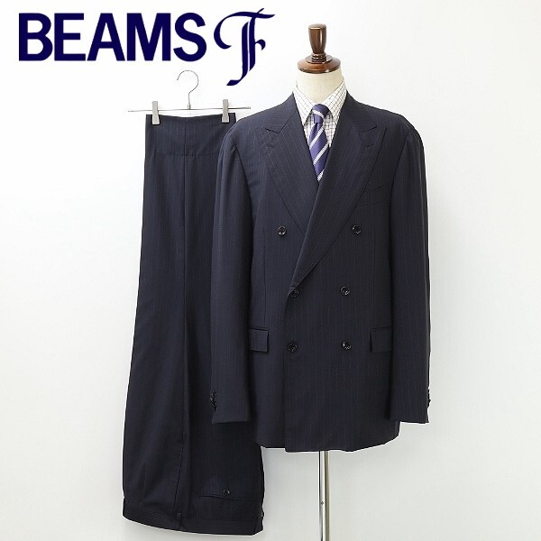 | 新品◆BEAMS F ビームスF マルチストライプ柄 ダブル スーツ セットアップ 紺 ネイビー 58/8R | |
