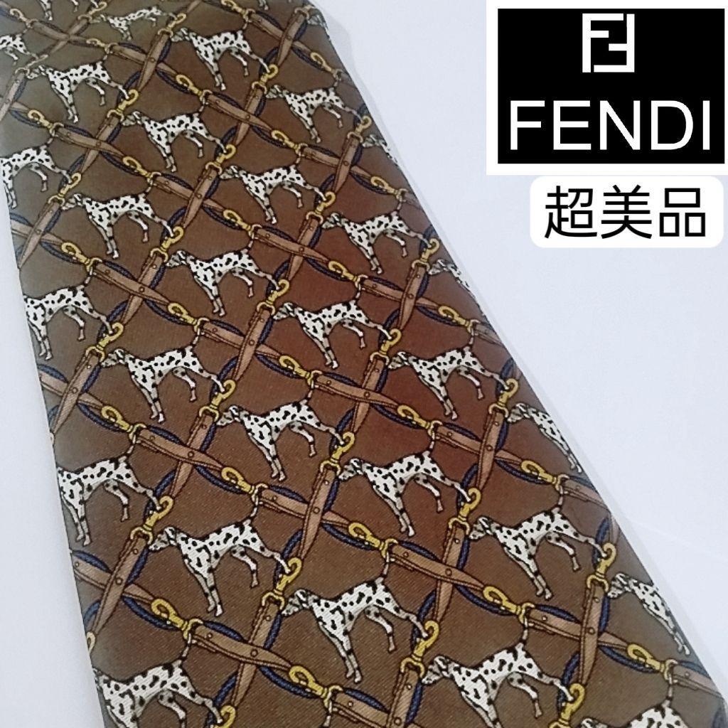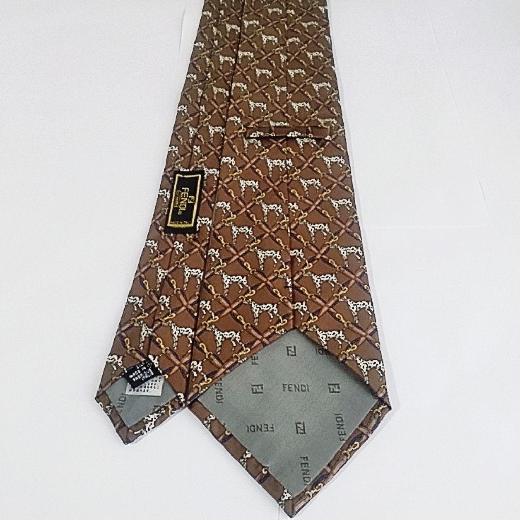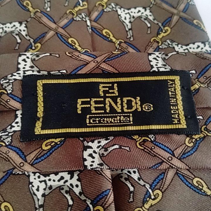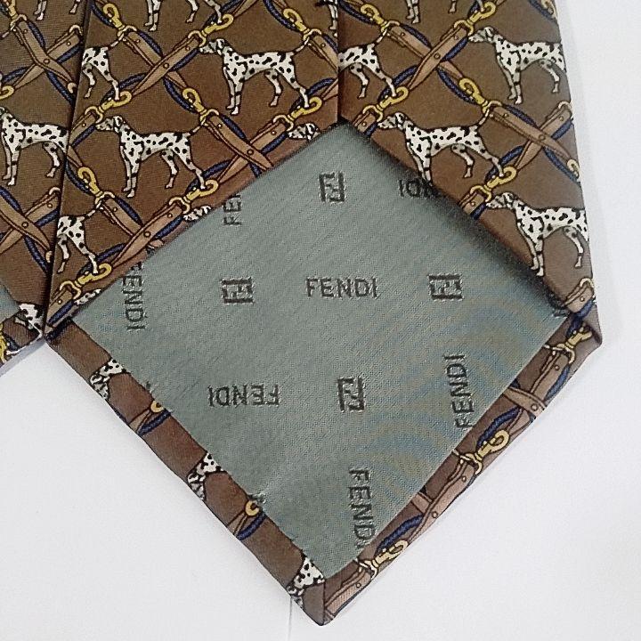 未使用に近い 超美品 フェンディ ネクタイ ブラウン 犬 イタリア製 シルク