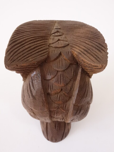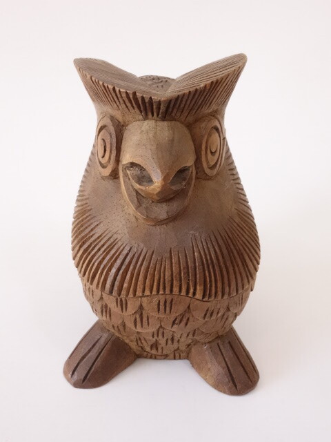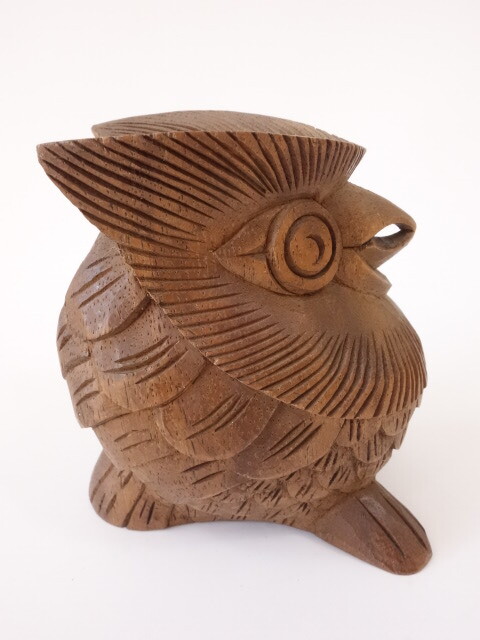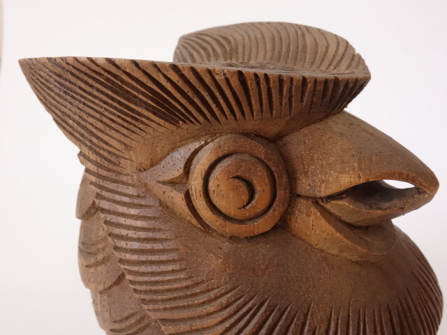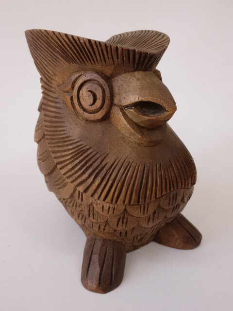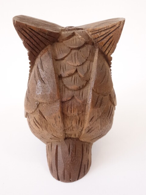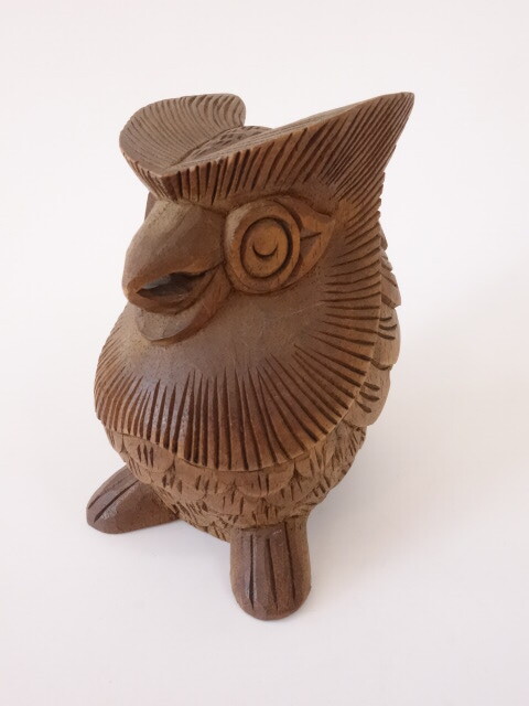 木製の木彫りのフクロウです。