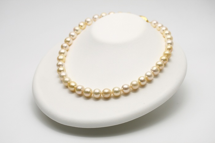 トーンの異なる色合いの珠を配置したアコヤマルチカラーネックレスです ホワイト系などのフォーマルネックレスとは一味違った魅力がございます。 こちらは和珠希少大粒サイズの10.0-11.0mmの珠で組まれております。 デイリーにも気軽に和珠の輝きをお楽しみ頂ける一品です。 ショッピングや外食など少しオシャレをしたい時などにもオススメです。 | |