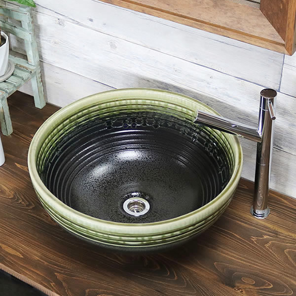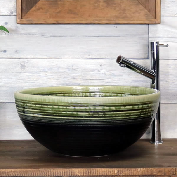 | 商品名 | 信楽焼 緑風千段深型手洗い鉢(中型) |