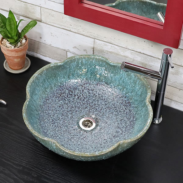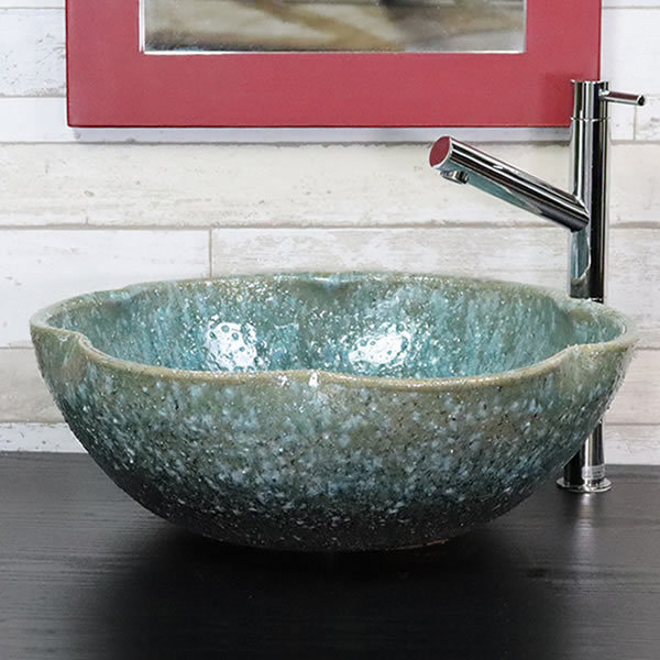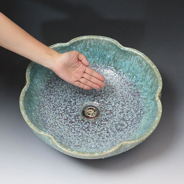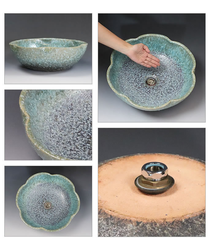商品名 | 信楽焼 花型緑窯変手洗い鉢(中型) |