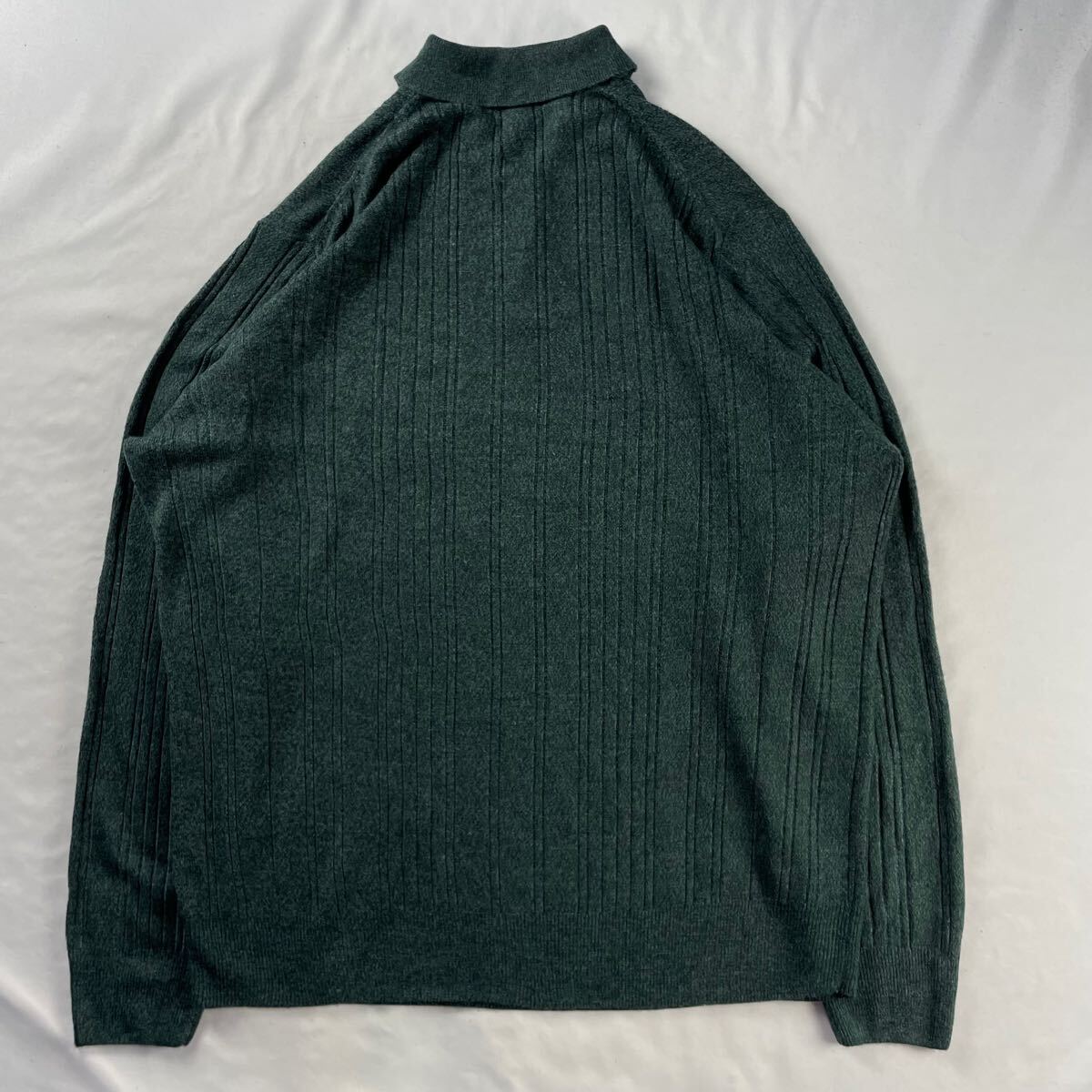 US Vintage 90s DOCKERS アクリル100% 立体 3D ケーブル編み メランジ 単色 プレーン 深緑 グリーン 薄手 デザイン ニットポロ