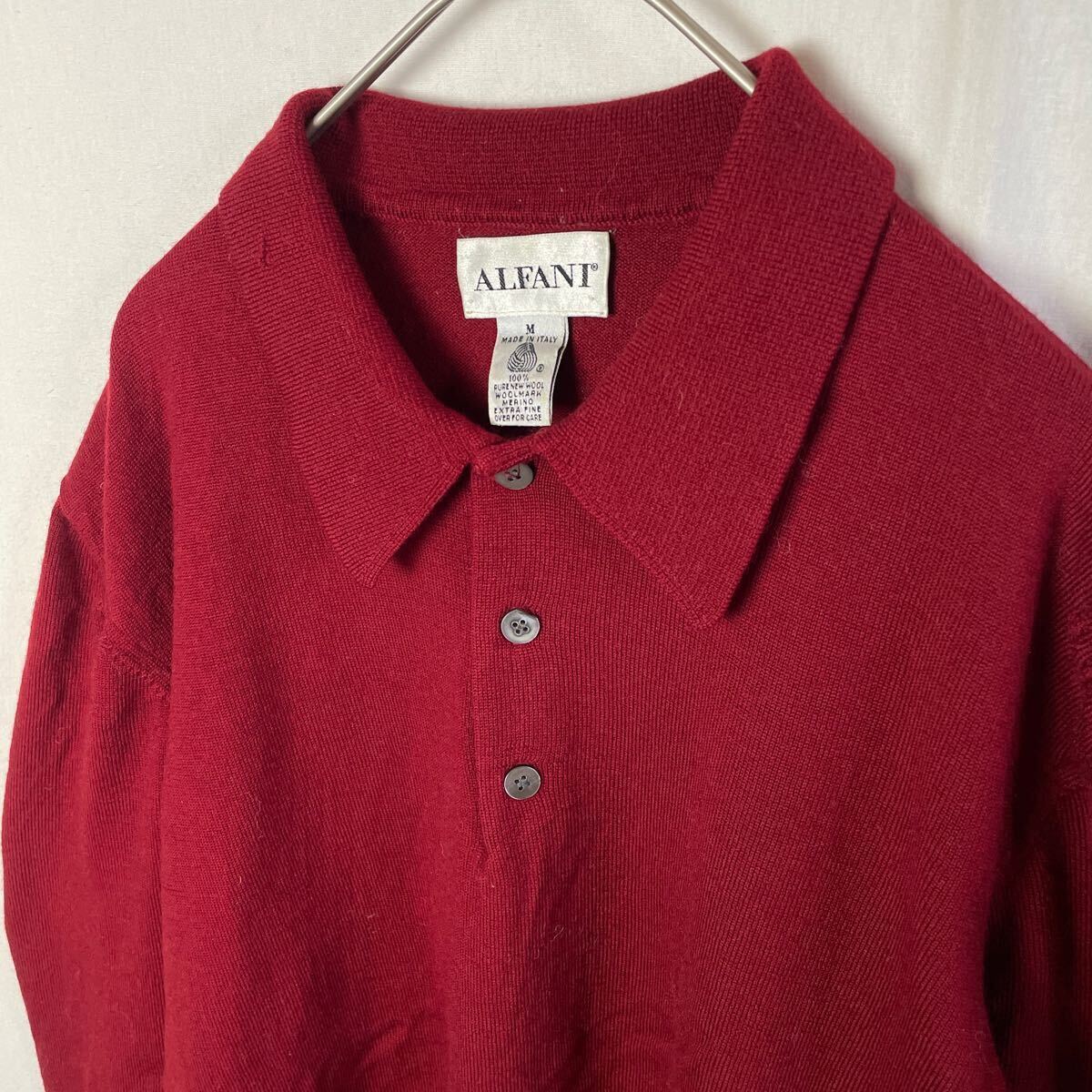 イタリア製 ALFANI ニットポロシャツ 古着 Mサイズ ヴィンテージ レッド