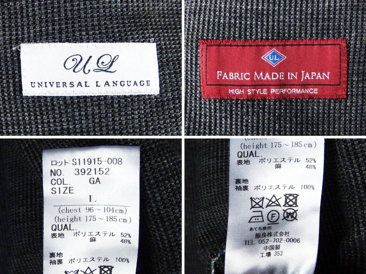 | 商品説明 | ■商品について ブランド名:UNIVERSAL LANGUAGE 生産国:MADE IN CHINA サイズ:L カラー:グレー 素材:ポリエステル 52% リネン 48% ・フロント 2ボタン ・袖裏のみ裏地付き ・袖 開き見せ ・裾 サイドベンツ UNIVERSAL LANGUAGE のテーラードジャケット、 上質な日本製生地を採用した1着、 スッキリとした美しいシルエットが特徴です。 柔らかなジャージ素材で着心地が良く、オンオフ問わず着用頂けます。 着こなしの幅が広いアイテムなのでお勧めですよ。 是非この機会にご購入を検討頂けますと幸いです。 表記サイズ:L 肩幅:約45.5cm (両肩直線) 身幅:約52cm (脇下) 身幅:約47cm (胴幅) 袖丈:約59cm 着丈:約69cm (後身 衿付根から) ※平置にて計測 ※素人採寸のため多少の誤差はお許し下さい ■状態について 全体的に着用に伴う使用感、素材の特徴上若干の毛羽立感はありますが、 まだまだ問題なく着用頂ける状態です。 中古品のため少しでも状態を気にされる方、 完璧な商品をお求めの方は入札をお控え下さい。 -------------------------------------------------------------------- 他にも衣料品を中心に出品させて頂いております。 複数落札して下さった場合には、まとめて発送させて頂きますので、 送料がお得になります。⇒【出品リスト】 |
