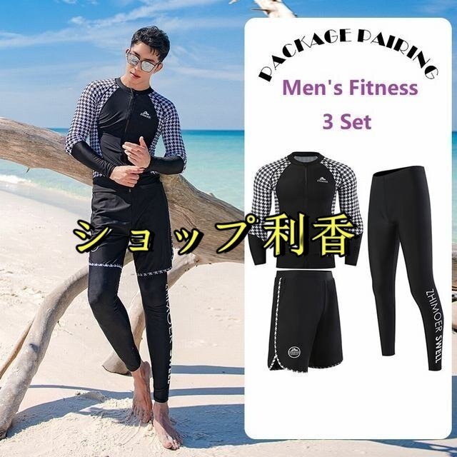 メンズ水着 フィットネス水着 セパレート水着 サーフフィットネス水着 上下セット スイミング スポーツ 体系カバー ジム サイズXL