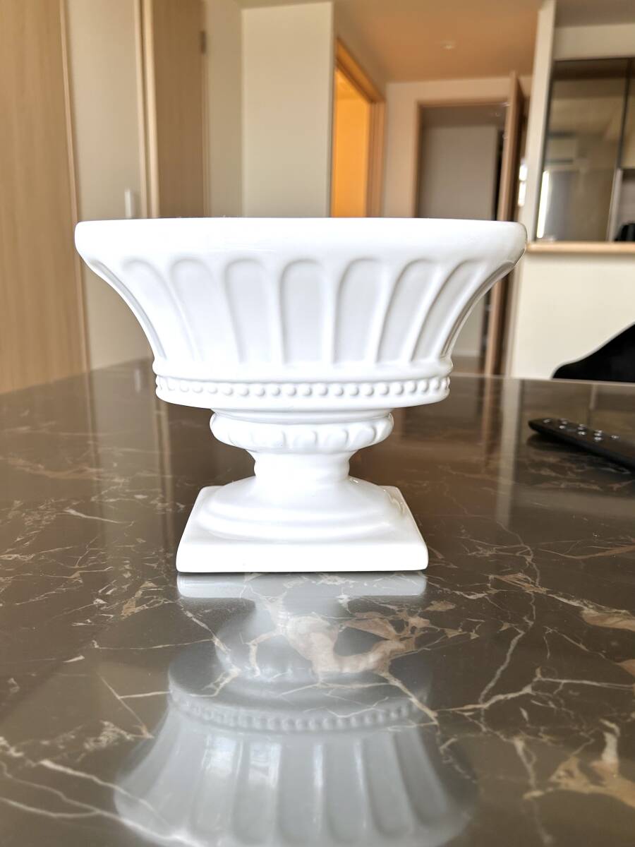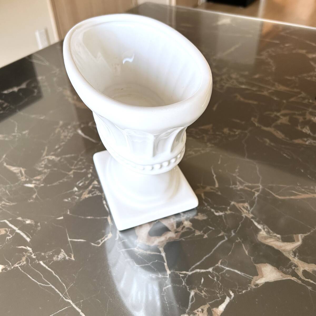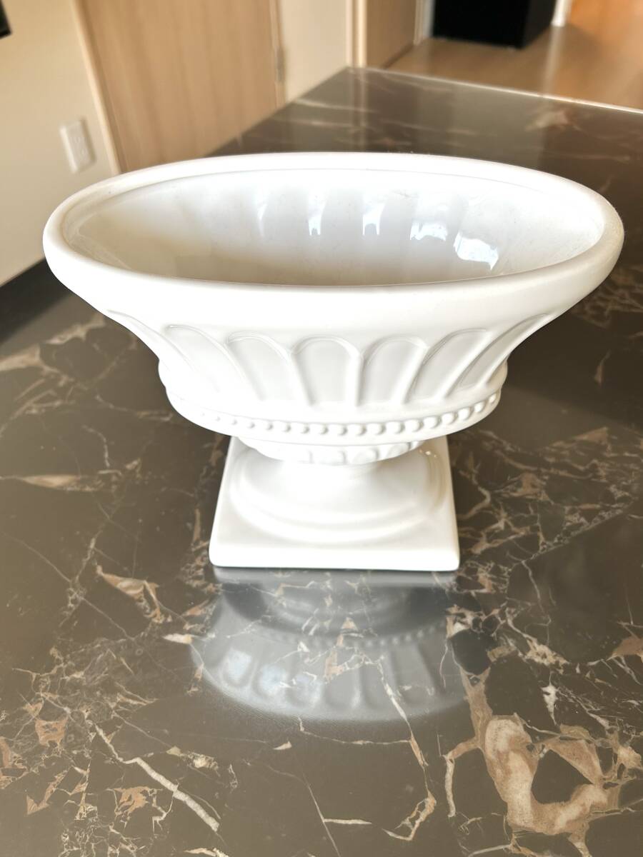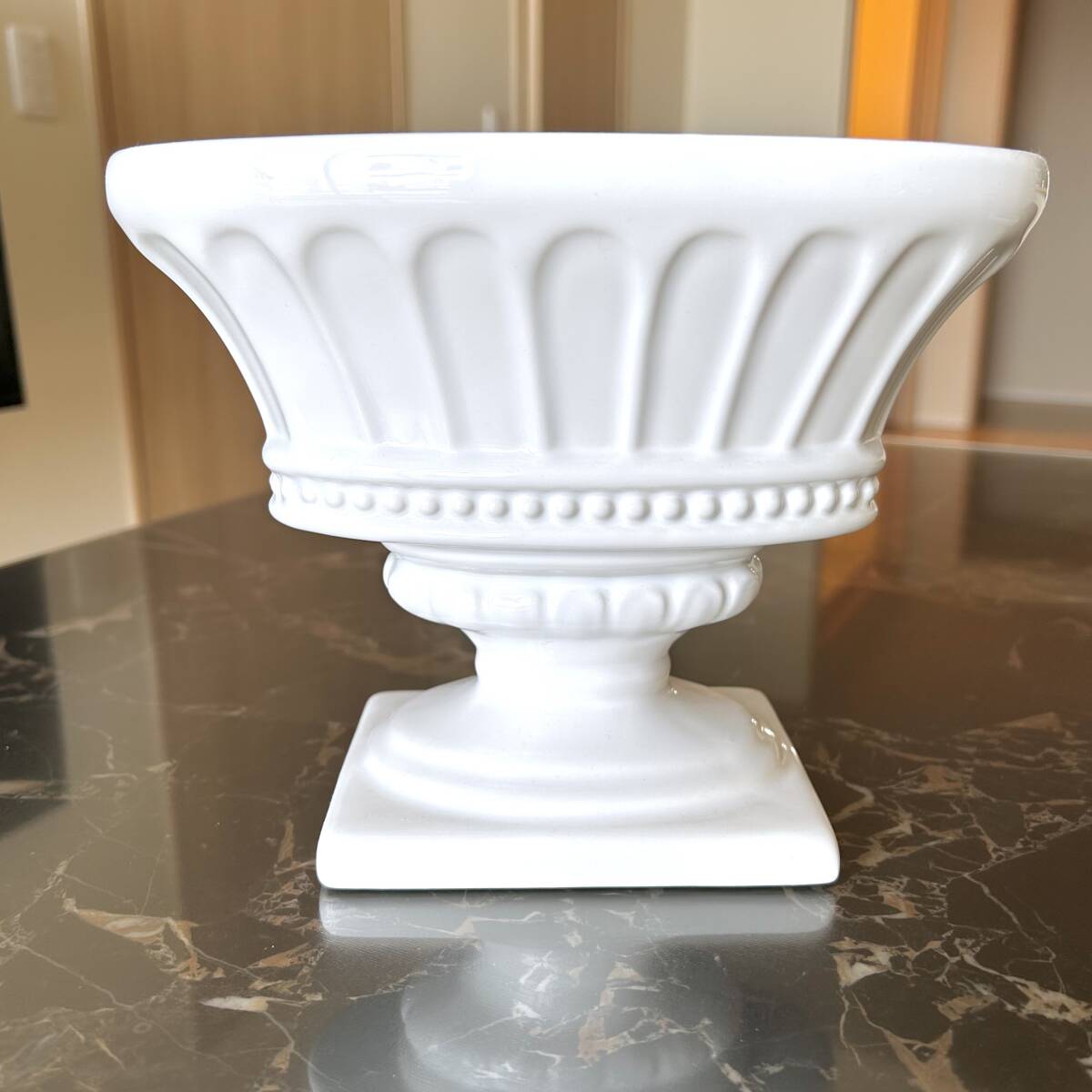 フラワーアレンジメント 花器 生花 陶器 ホワイト 楕円 高台 コンポート ロココ