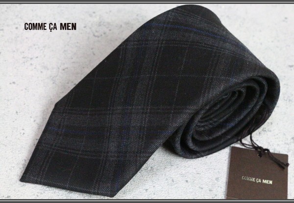 新品 コムサメン 秋冬 日本製 最高級チェルッティ イルプリンチペ生地 ウール タータンチェック柄 ネクタイ 黒灰 定価1.5万円/サンプル