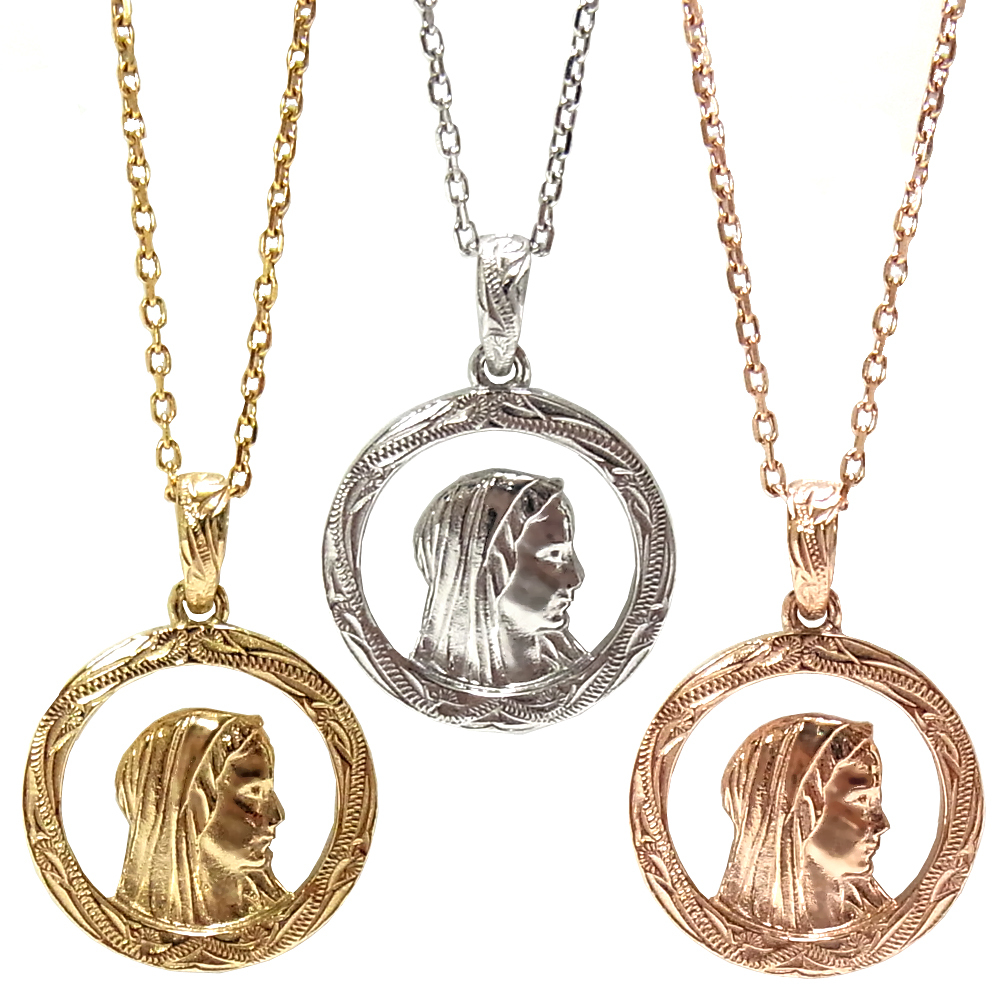 ★人気★ハワイアンジュエリー★アレルギー&温泉&海水浴OK★ステンレスネックレス★マリア様&ピンクGD&ゴールド&シルバー&ハワイアン柄★