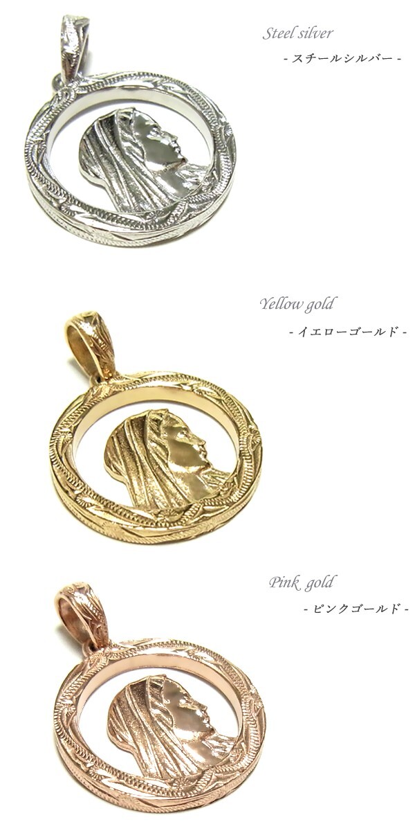 ステンレスペンダント マリア様&ピンクGD&ゴールド&シルバー&ハワイアン柄