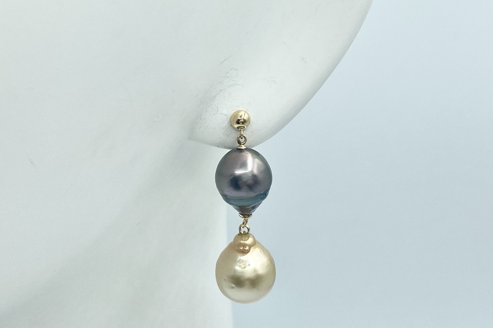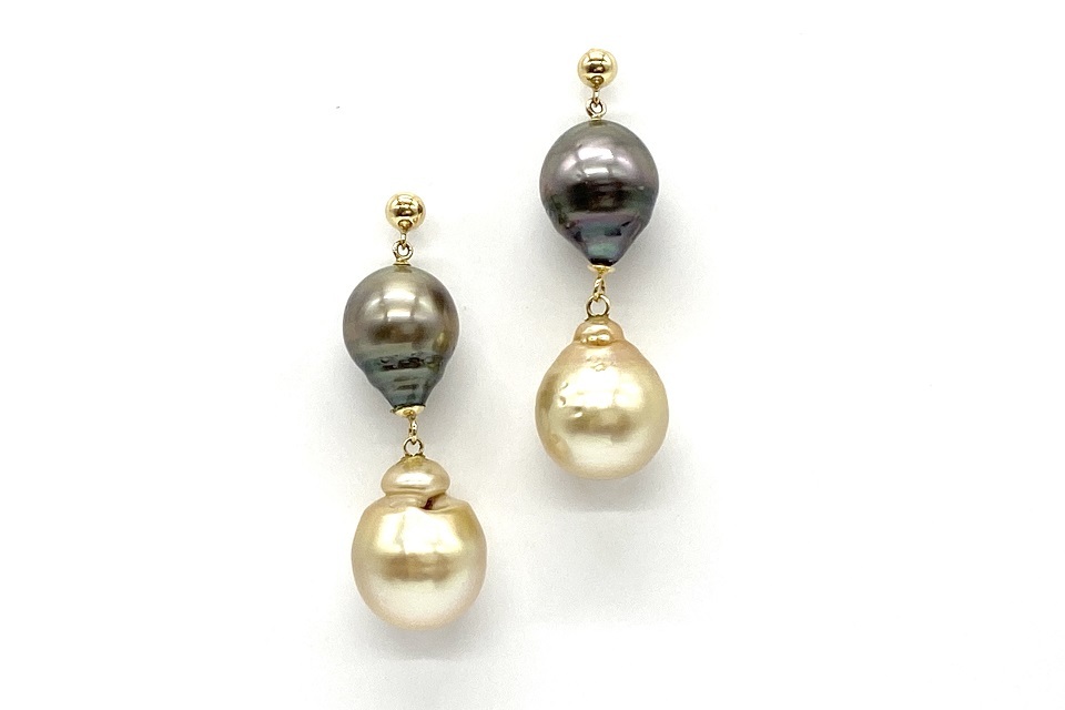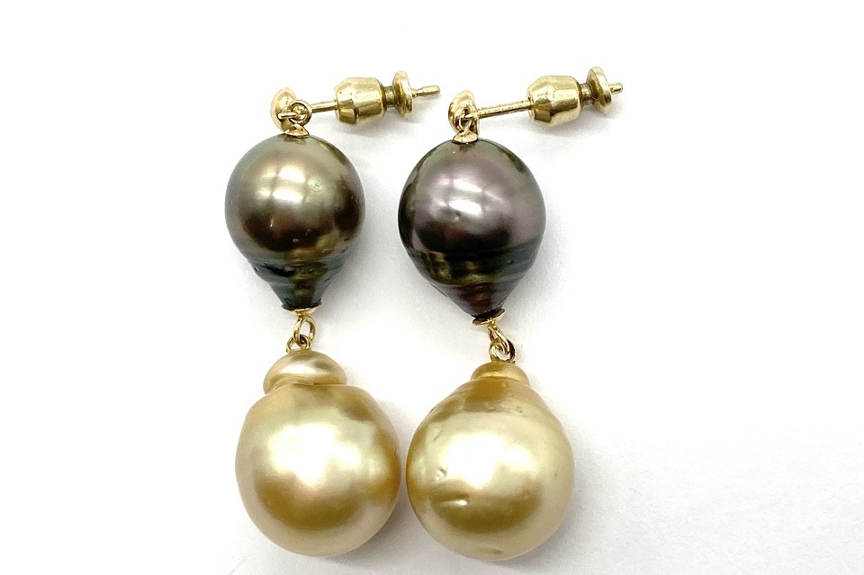 解説 | バロックシェイプではありますが、雫形の先端を向き合わせた調和に、なんとも素敵な味わいが・・・! キリリとしたカラーコントラストで、マルチカラーパール連とも相性も抜群! |