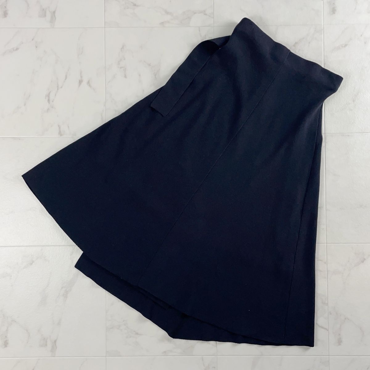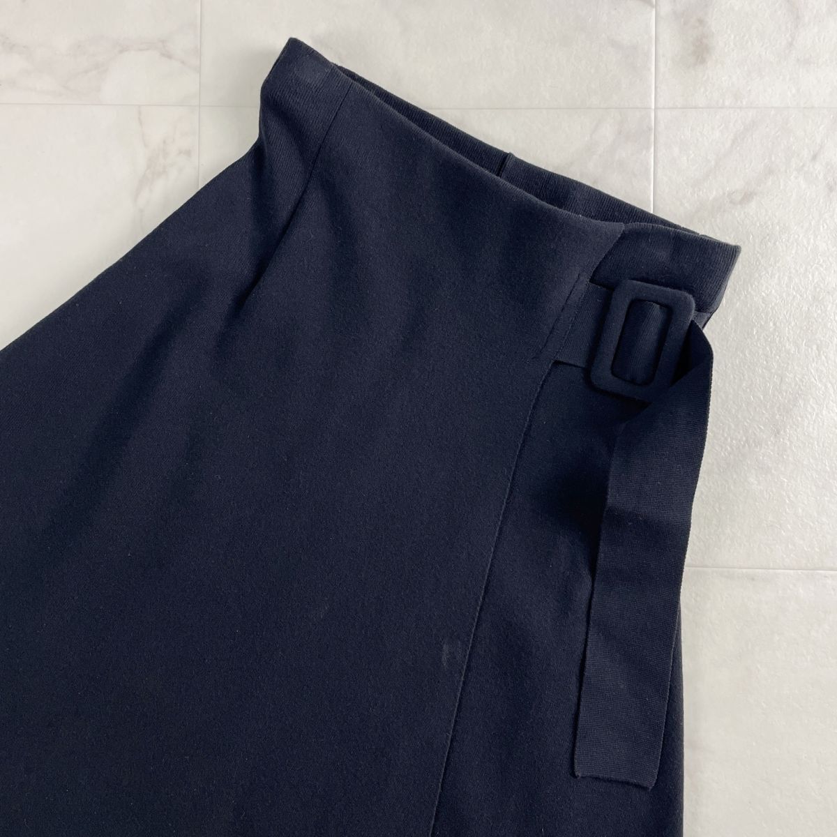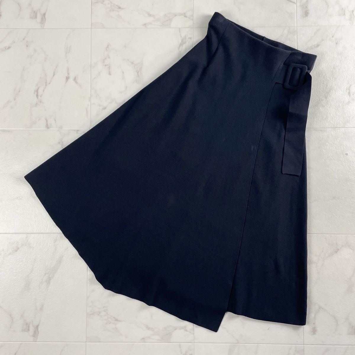 Mila Owen ミラ オーウェン ウールラップスカート ミモレ丈 巻きスカート ベルト付 黒 ブラック サイズ0*WC1380