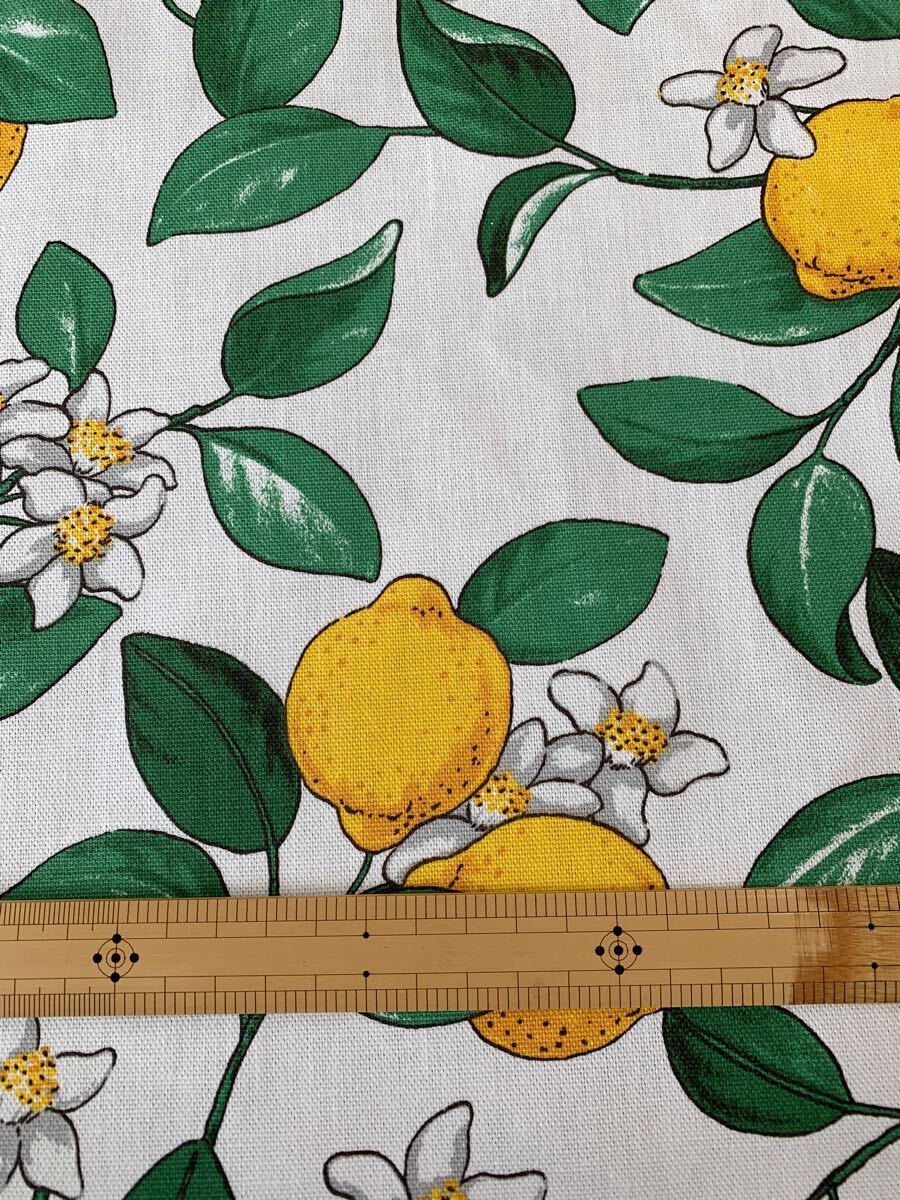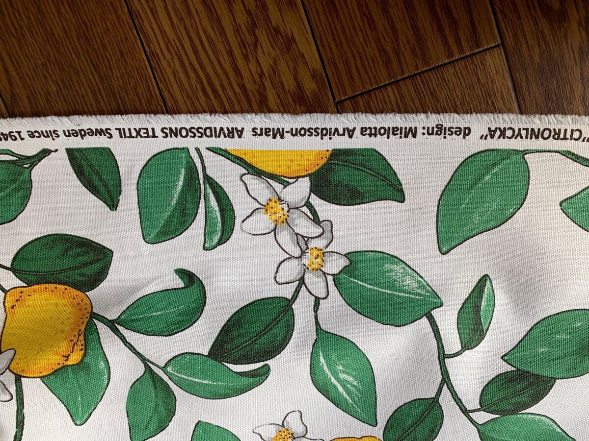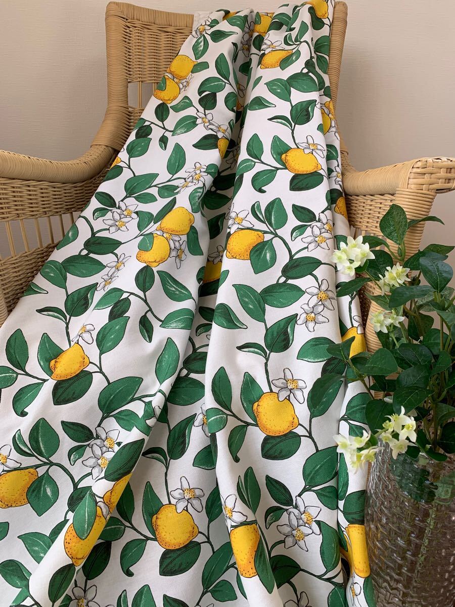 ●北欧スウェーデンのアルビッドソンズ社のプリント生地です●カーテンを始めインテリア専用のしっかり丈夫な生地●白地に濃いグリーンの葉にレモンの黄色い実の成る縁起に良い素敵な生地です●テーブルクロスや、椅子の張り替え、カバン作り、カーテンなど 色んなアイデアで貴方らしい作品作りをされてみられたらいかがですか?