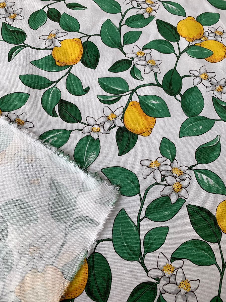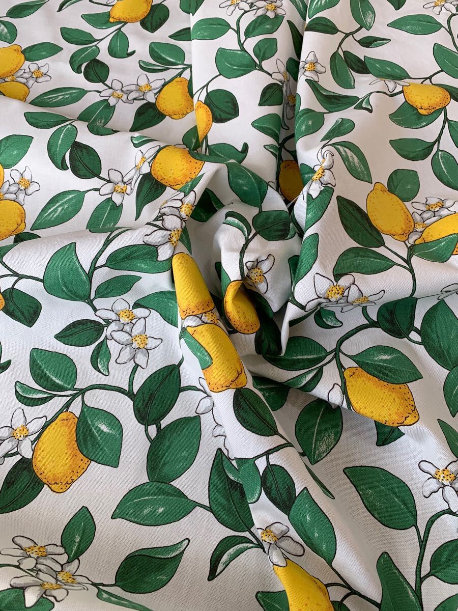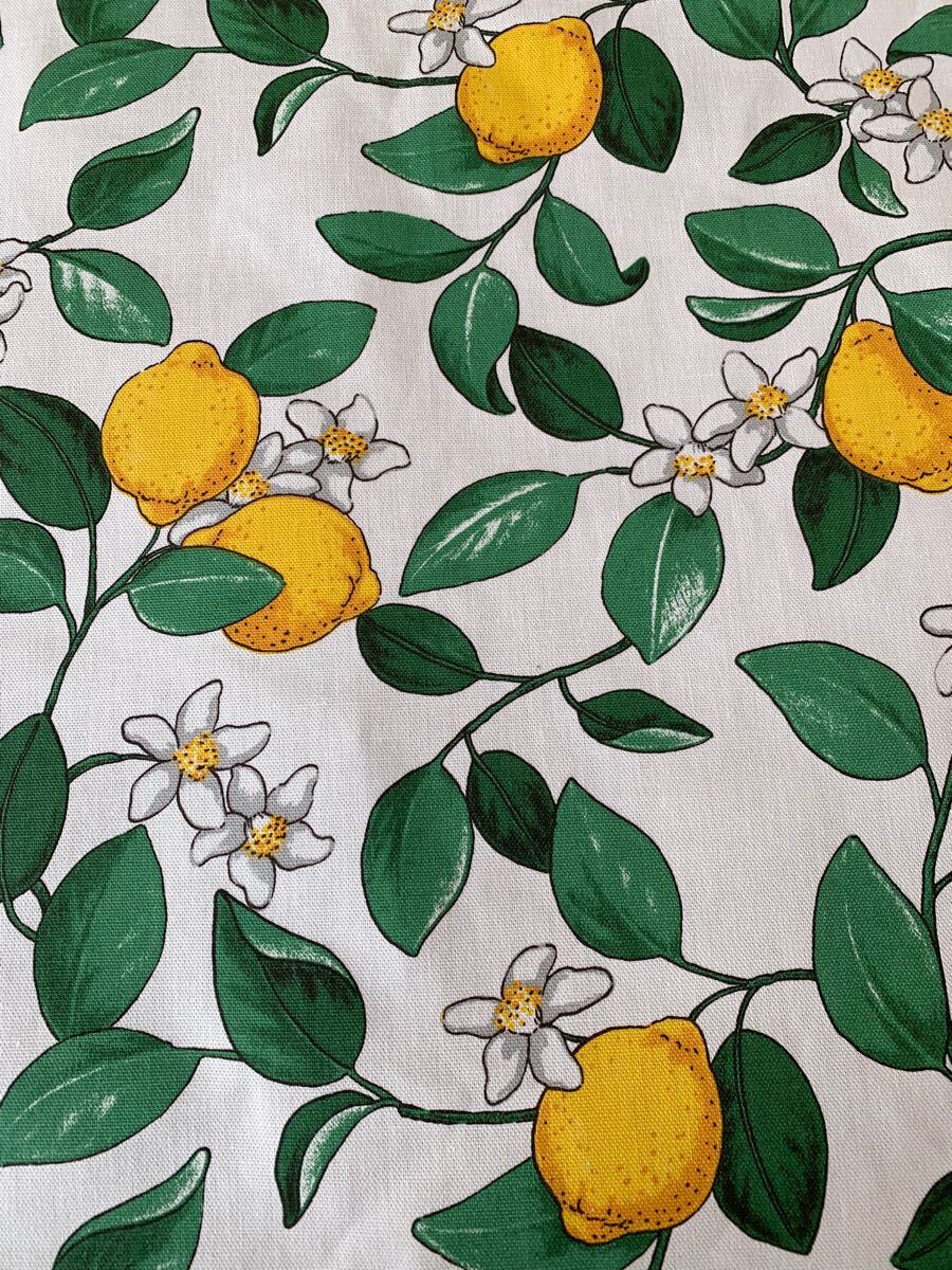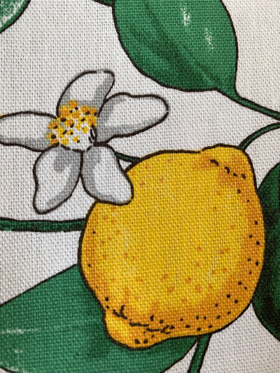 ●北欧スウェーデンのアルビッドソンズ社のプリント生地です●カーテンを始めインテリア専用のしっかり丈夫な生地●白地に濃いグリーンの葉にレモンの黄色い実の成る縁起に良い素敵な生地です●テーブルクロスや、椅子の張り替え、カバン作り、カーテンなど 色んなアイデアで貴方らしい作品作りをされてみられたらいかがですか?