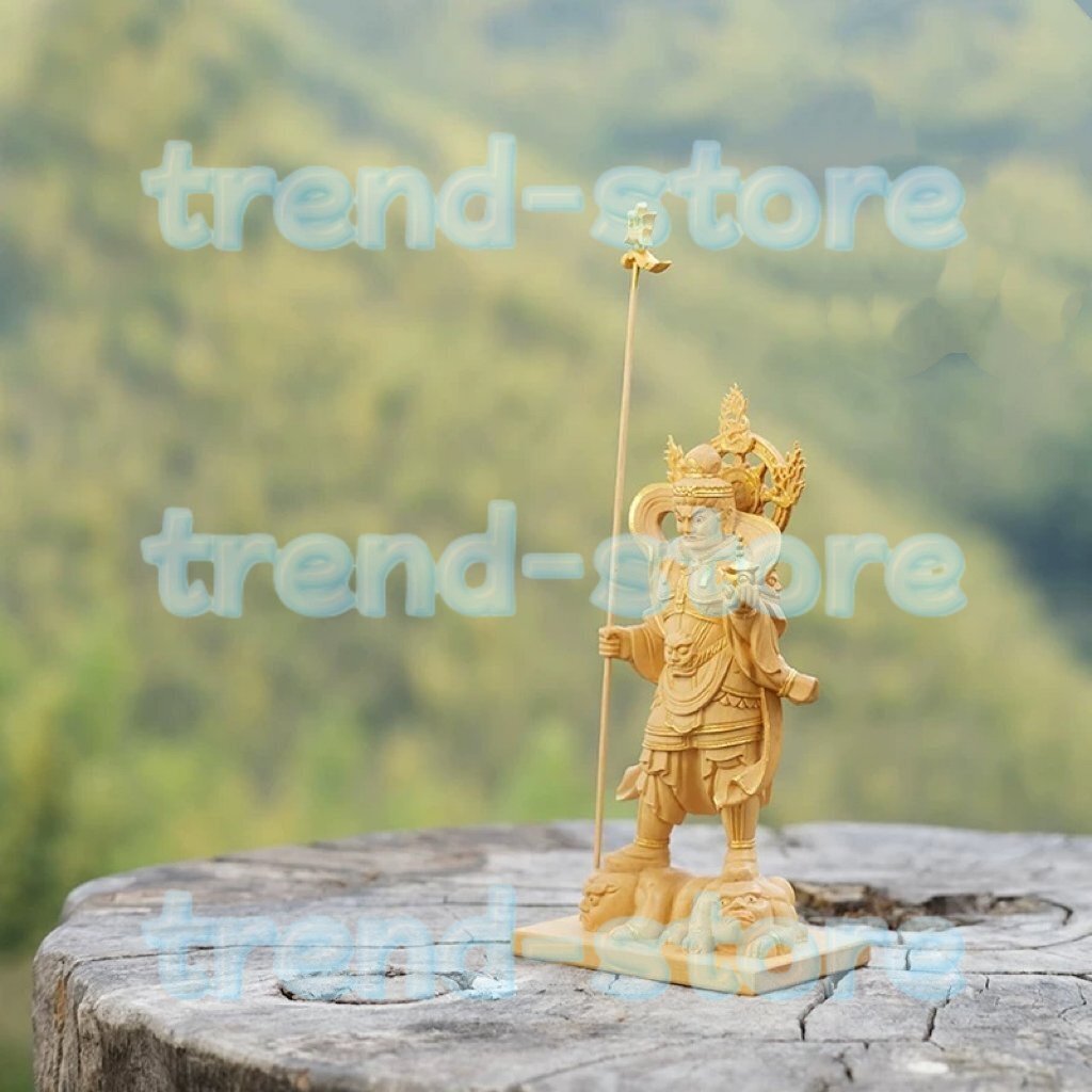 極小仏像 毘沙門天-高さ11.5cm 柘植(ツゲ)木製彫刻 多聞天 仏像 フィギュア 七福神 木彫り 置物