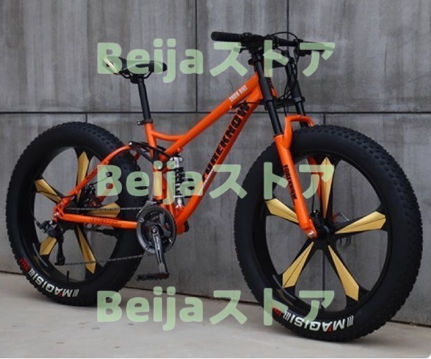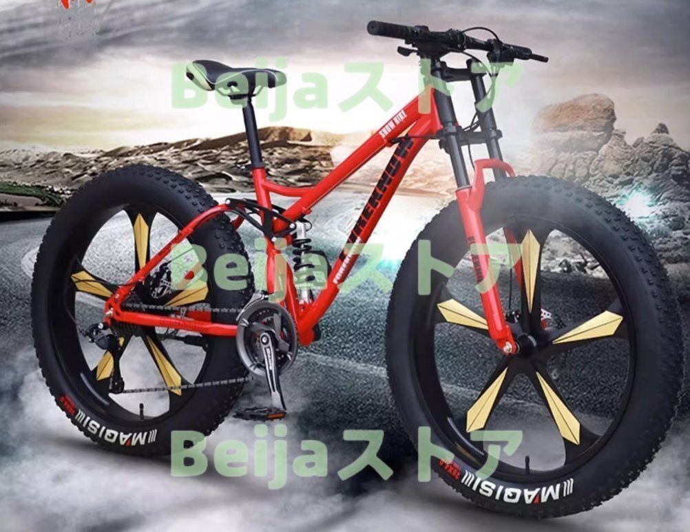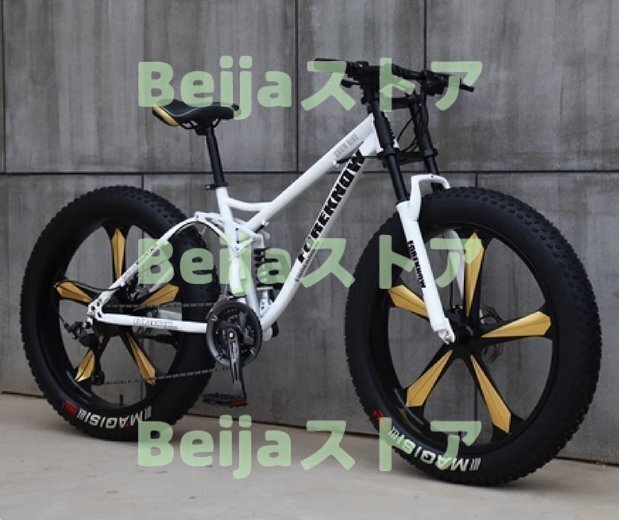 強くお勧め マウンテンバイク 26インチファットタイヤハードテイル 7速 デュアルサスペンションフレームとサスペンションフォーク F1547
