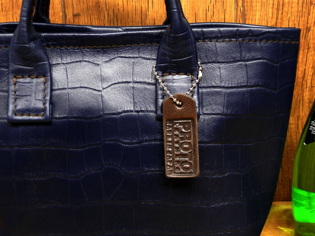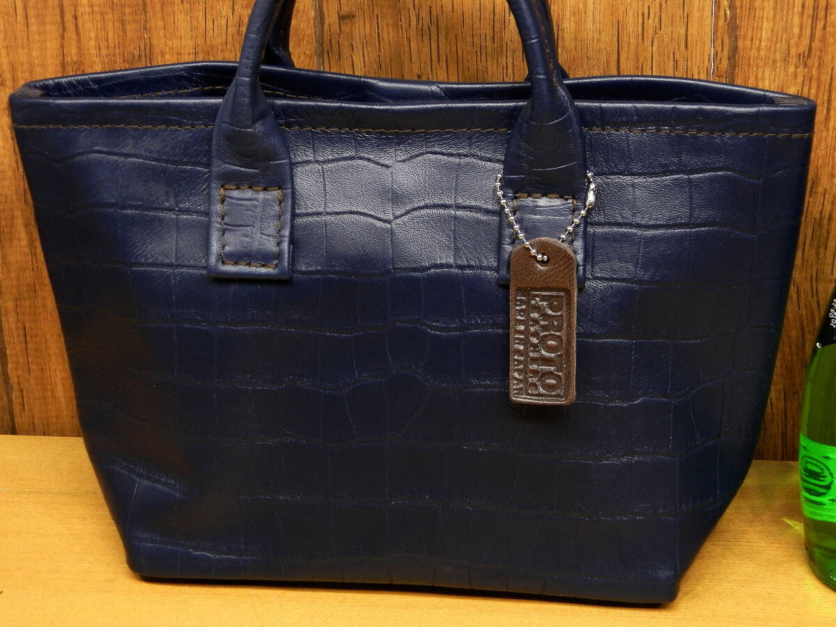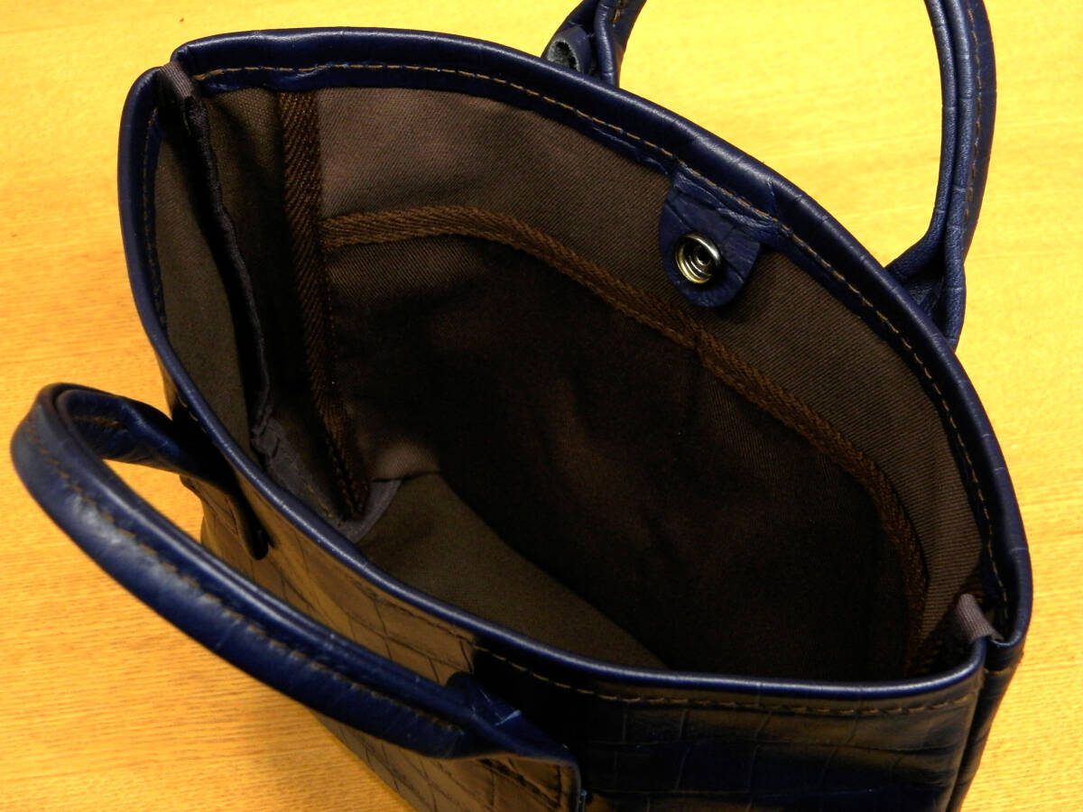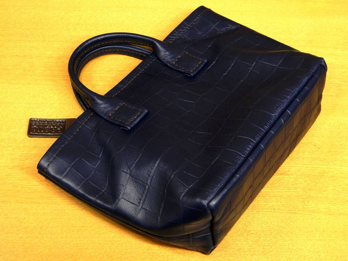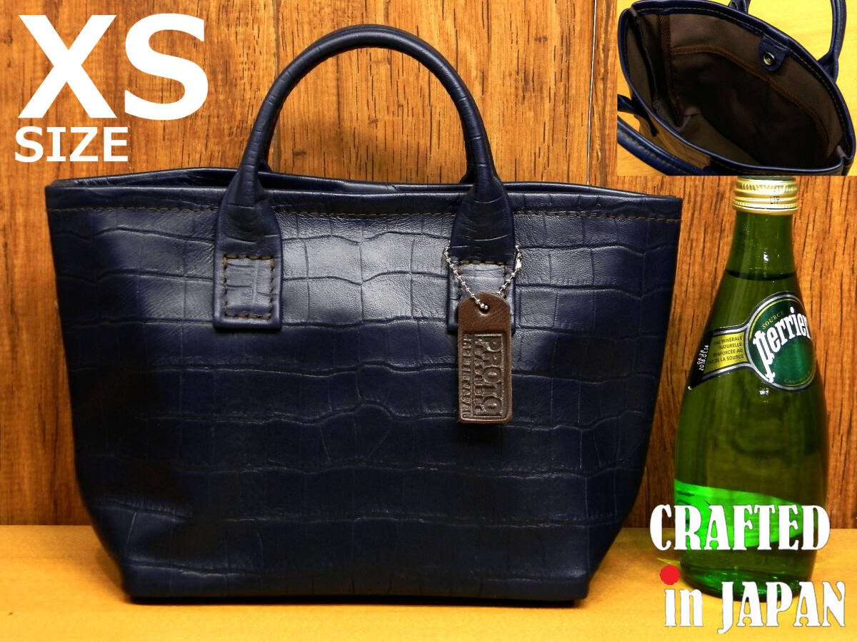 【受注生産】☆XSサイズ☆ブラウン裏地×ダークネイビー クロコ柄レザーの小型ミニ トートバッグ!日本製 姫路レザー濃紺 本革 牛革 帆布