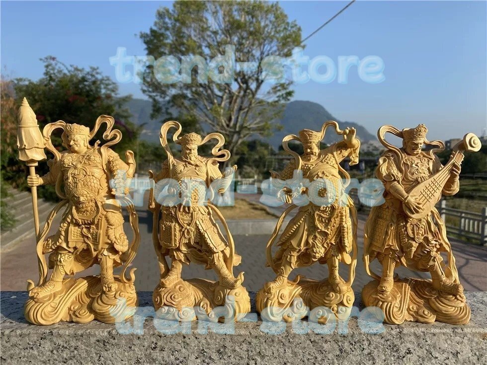 極上品 ★木彫り 仏像「四天王立像」持国天・広目天・増長天・多聞天 高級天然ツゲ木彫り 縁起仏像 毘沙門天 守護神
