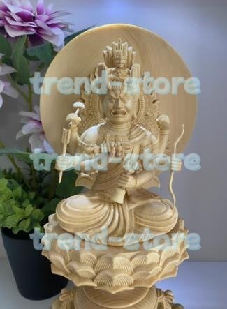 極上品 新作 愛染明王像 総檜材 木彫仏像 仏教美術 精密細工 仏師で仕上げ品 高さ34cm